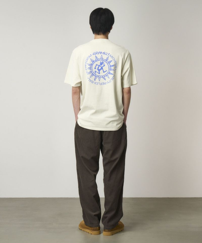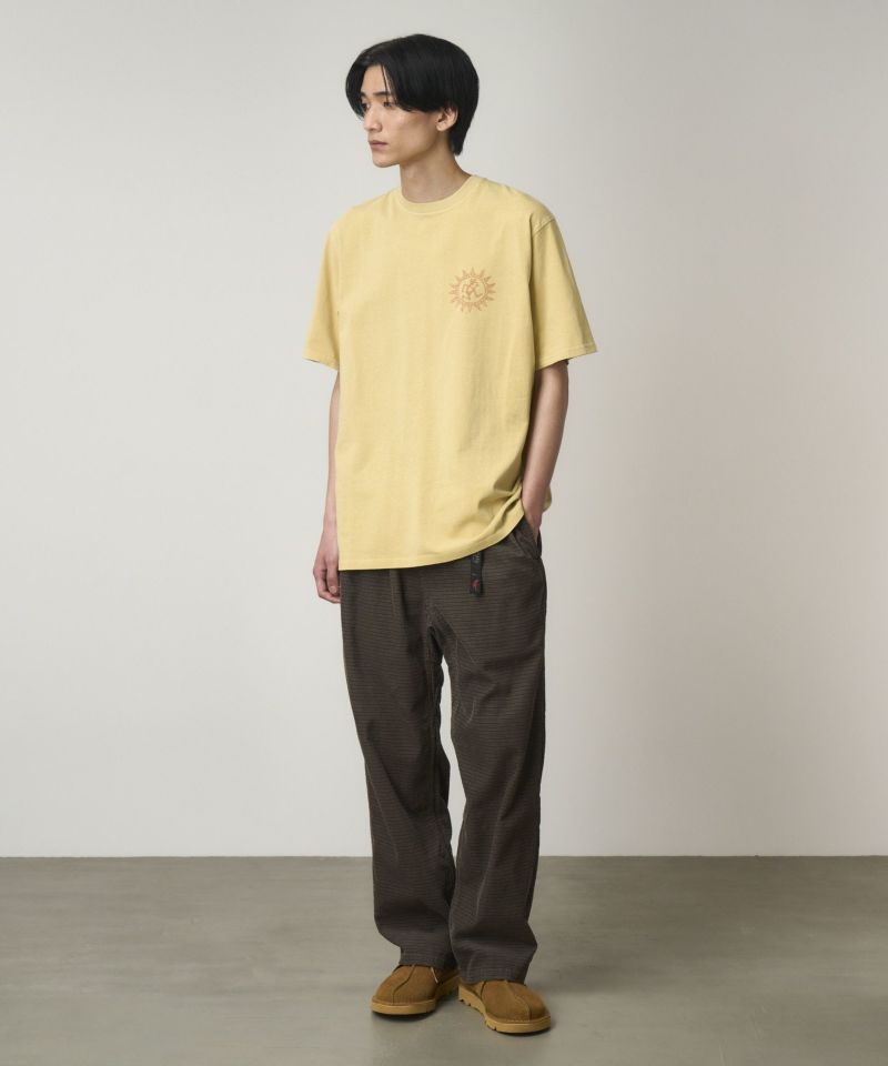 環境配慮のエココットンを使用したドライタッチなTシャツは、肌触りがよく、毎シーズン更新される色展開もたのしみの一つ。"GRAMICCI"な、ロゴからグラフィックまで多岐にわたるデザインが充実しています。またピグメント染色により、通常の色展開に比べ、より一層雰囲気を感じさせるヴィンテージライクなカラーリングとなっています。