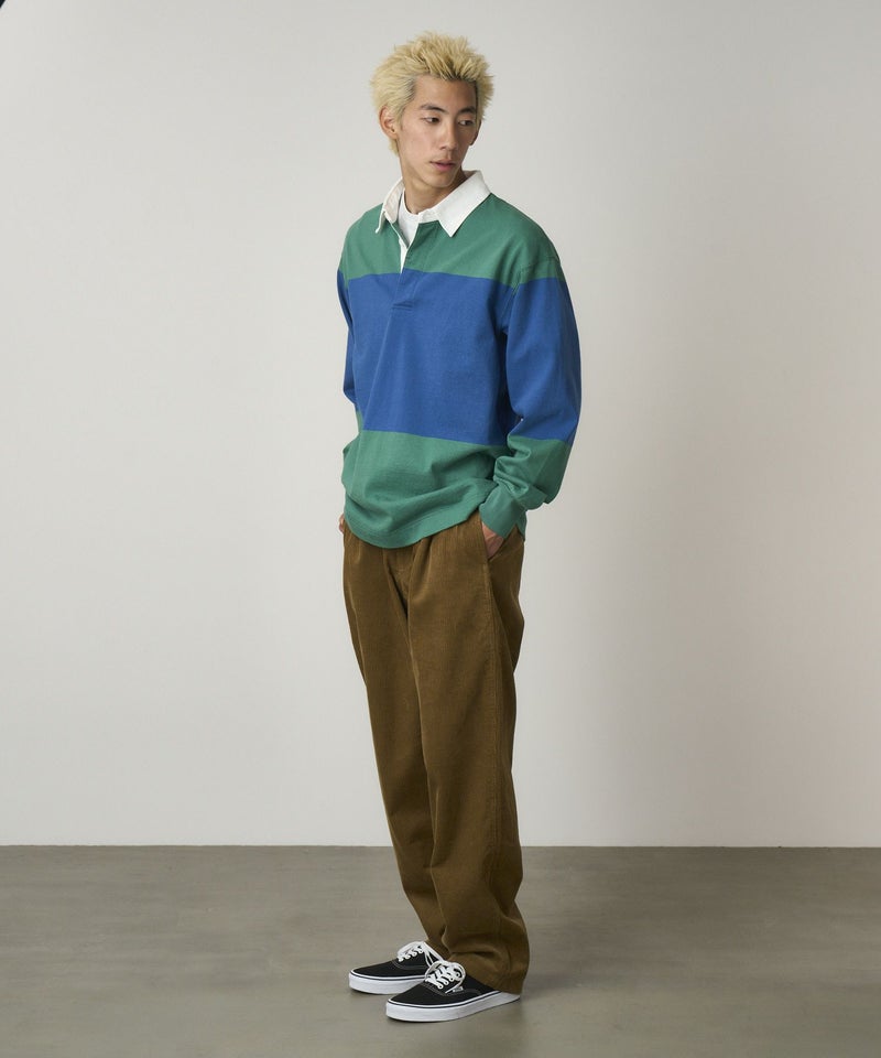 70年代のクライマーがこぞって着用していたのが、丈夫なラグビーシャツ。動きやすさとタフさを求められるクライミングにはピッタリだったようです。ドライタッチで繰り返し洗濯しても型崩れしにくい、耐久性の高いコットン天竺と、衿にはツイル、前立てにはコットンナイロンを使用し、2種類ボーダーでの展開です。着こむほどに雰囲気の出る一枚です。