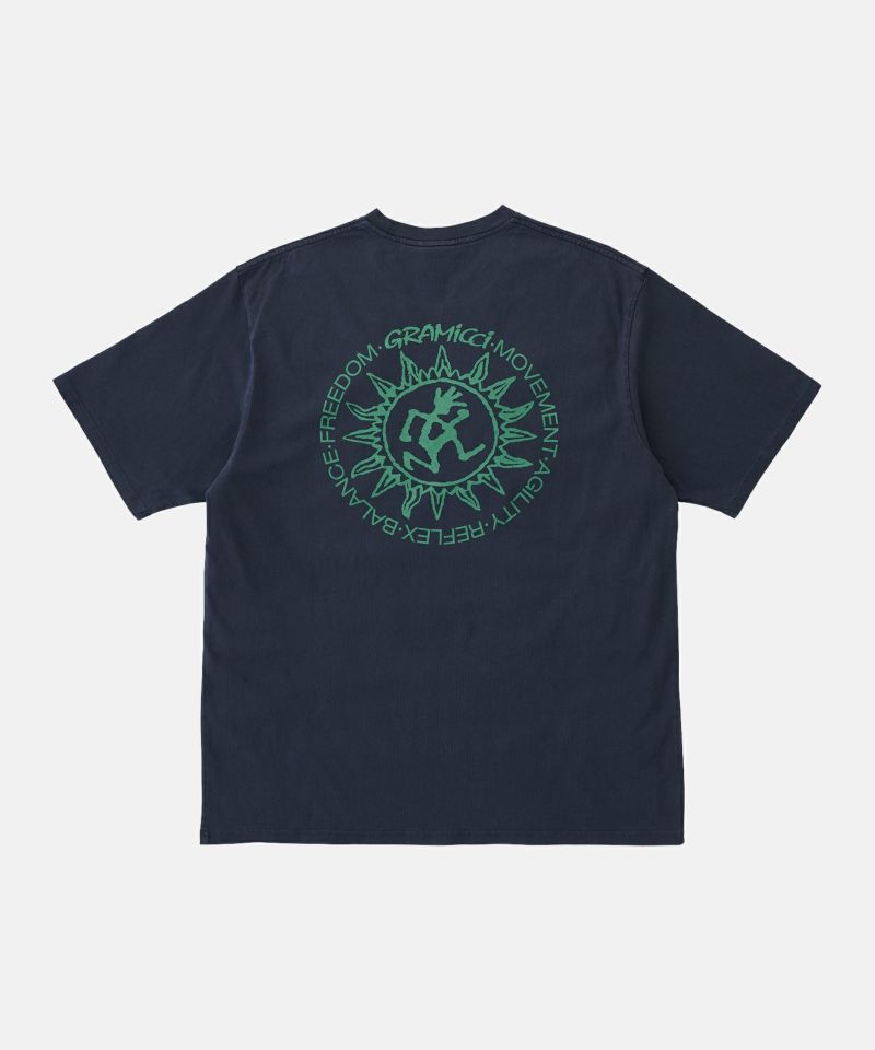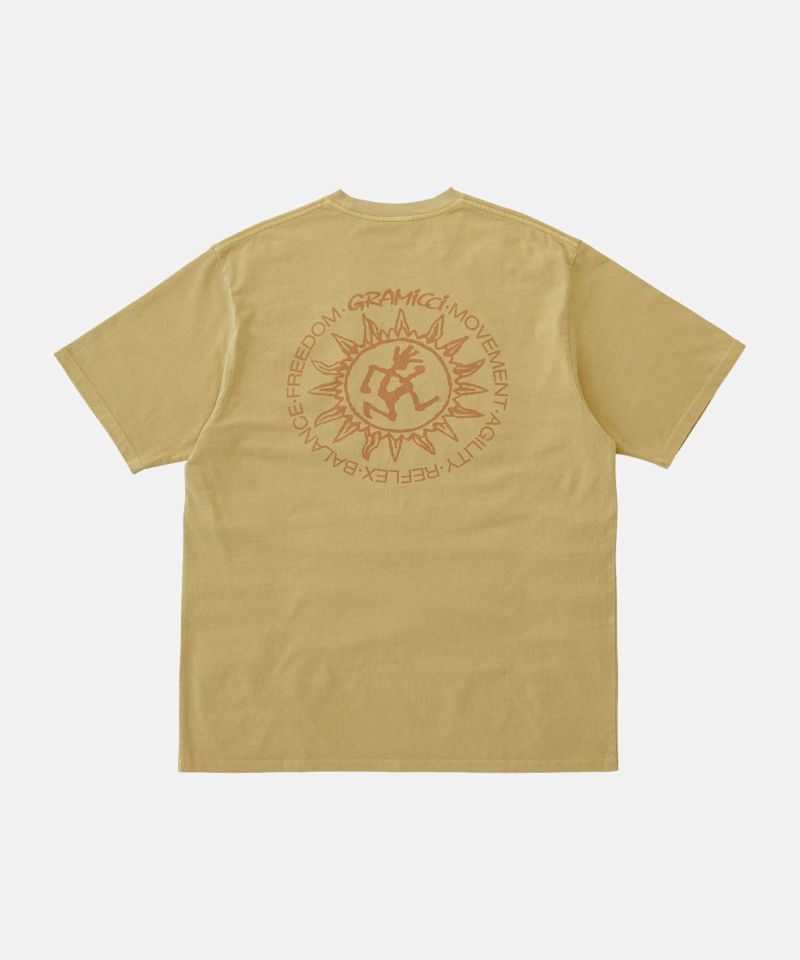 環境配慮のエココットンを使用したドライタッチなTシャツは、肌触りがよく、毎シーズン更新される色展開もたのしみの一つ。"GRAMICCI"な、ロゴからグラフィックまで多岐にわたるデザインが充実しています。またピグメント染色により、通常の色展開に比べ、より一層雰囲気を感じさせるヴィンテージライクなカラーリングとなっています。
