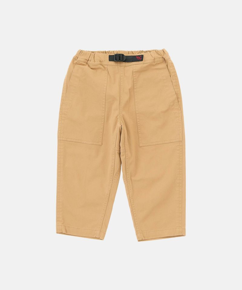 元気に動き回る子供たちにも、ブランドのルーツであるクライミングの機能性はぴったりです。大人同様、180度の開脚を可能としたガセットクロッチ仕様に加え、オーガニックコットンのストレッチツイルでのパンツはどんな動きにも対応します。片手で調整できるウェビングベルトとイージーウェスト仕様は、巻込み等の危険があるためフェイクで、内側のゴムアジャスターでのサイズ調整となります。