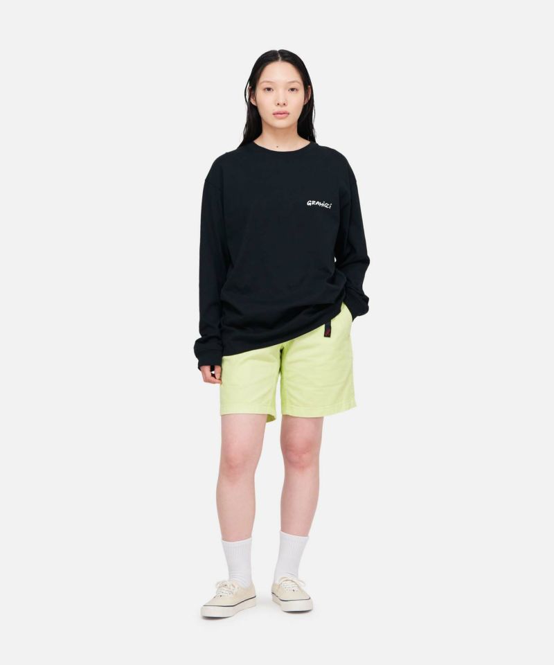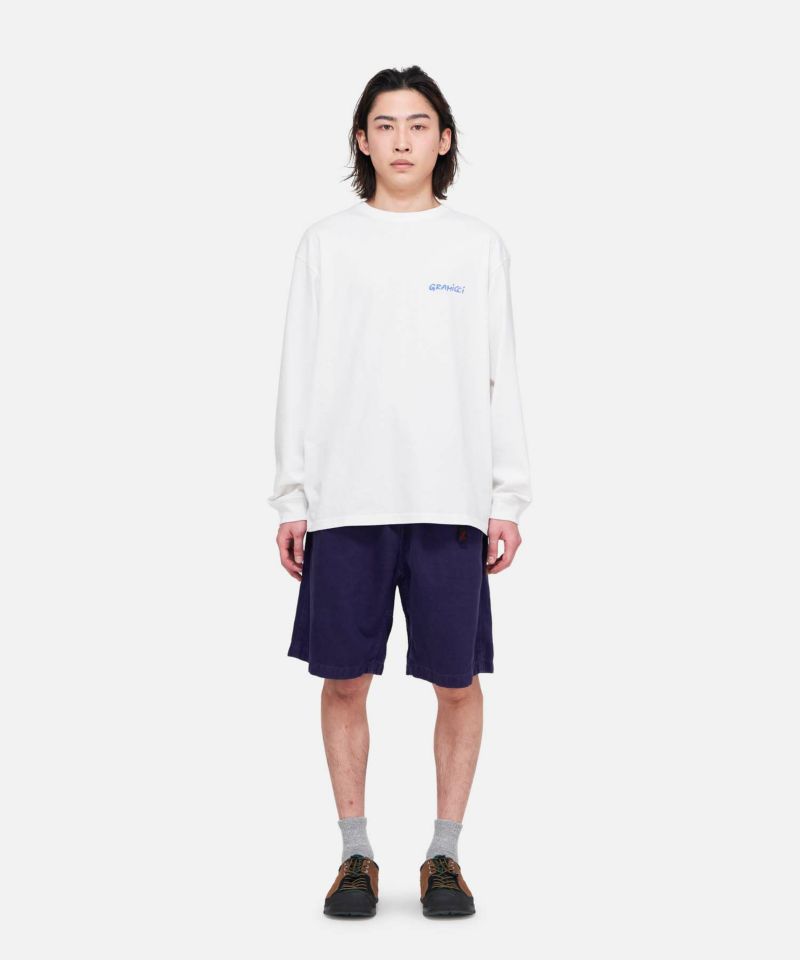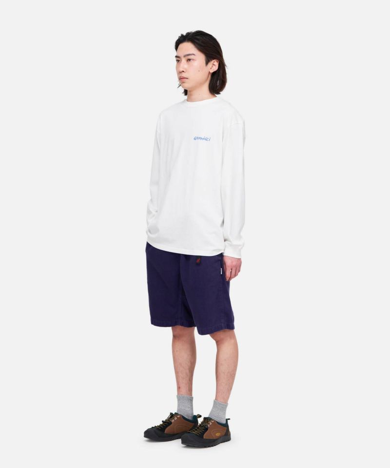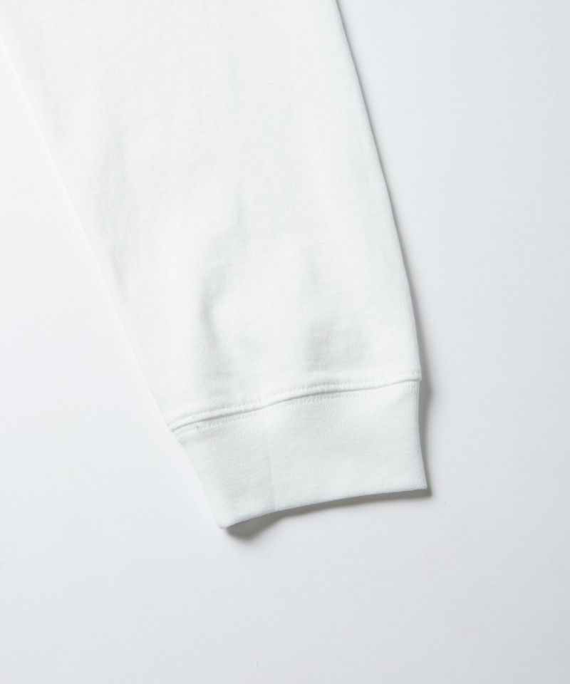 中厚手のジャージーコットンを使用した、通年活躍する万能Tシャツです。夏はショーツに合わせて軽やかに、冬はレイヤードスタイルのインナーとしても快適。季節を問わず着まわせるのが魅力です。そして、フロントのグラフィックもポイント。さりげなく個性を演出してくれる一枚です。