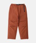 特性が異なる2種類の糸を用いて織機し、染色からくる縮率の差によって生地表面に独特の凹凸がある、シアサッカー調のユニークな素材は、独特のハリ感があり、軽撥水性も持ち合わせています。膝にタックをとったゆとりあるシルエットのパンツは、裾はドローコード仕様で、後身頃にフラップポケットを備えています。