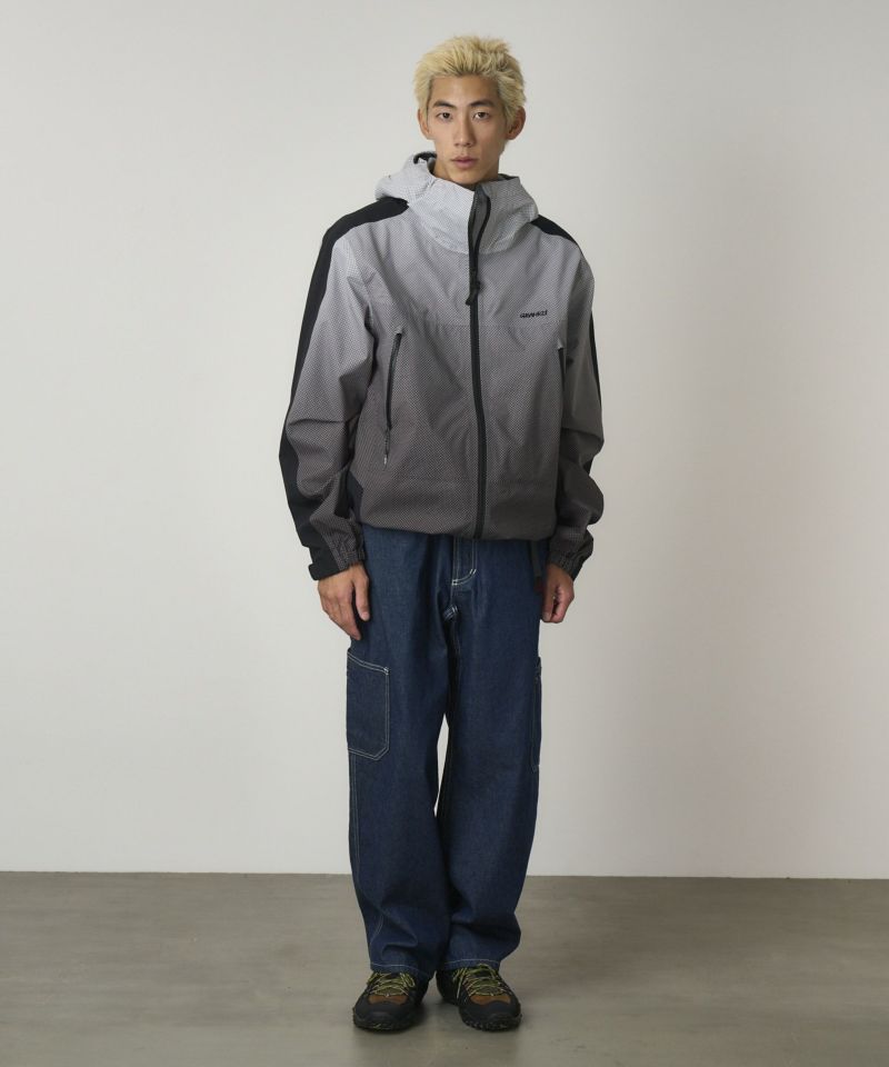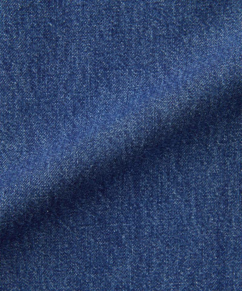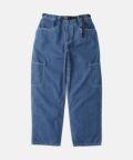 しっかりした質感でハリコシのある、環境配慮エココットンを使用した11オンスデニムを使用した、膝上両脇とお尻にパッチポケットを持つ、ゆとりあるシルエットの GRAMICCI では定番のROCK SLIDE PANT。