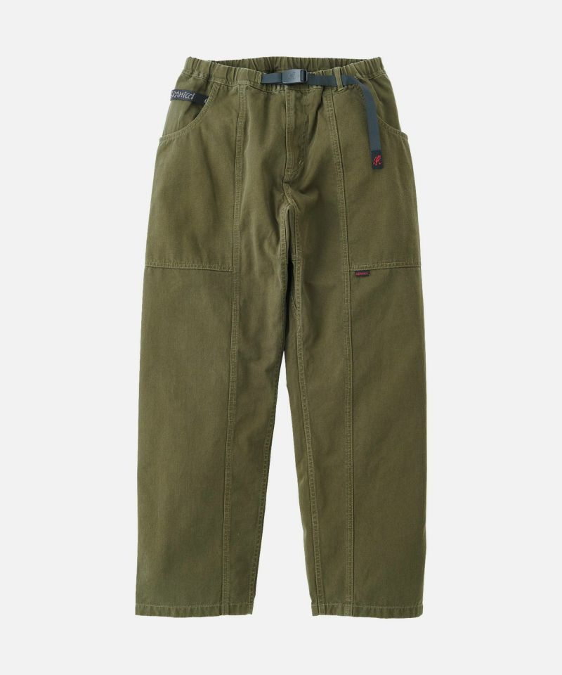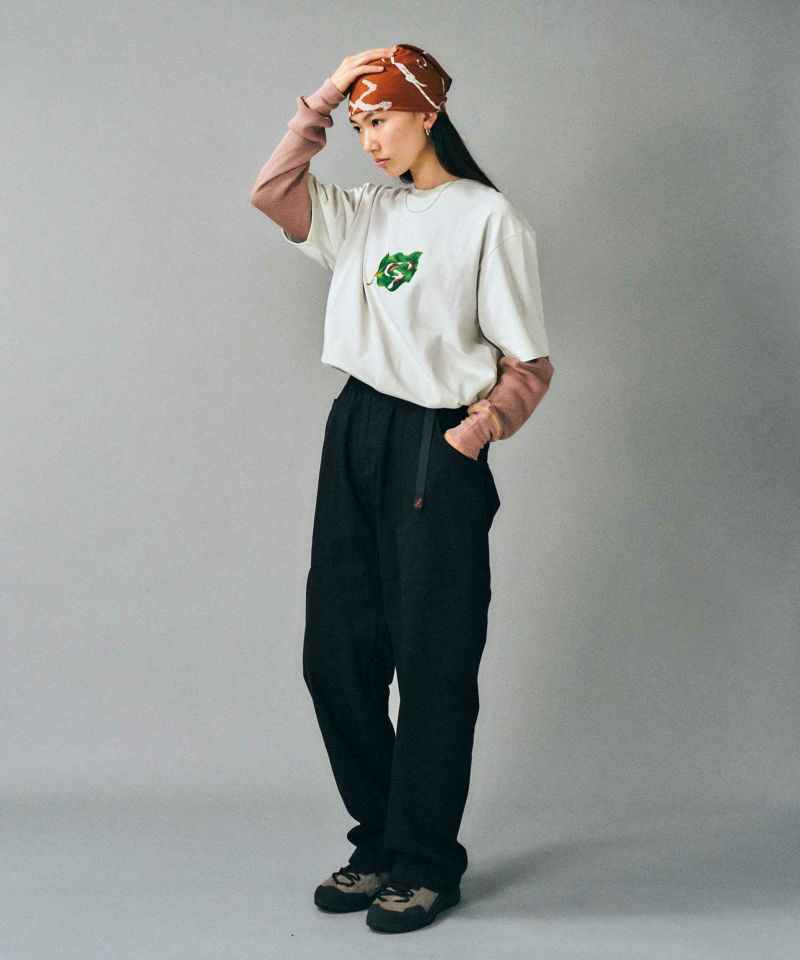 「ガジェットパンツ」は、1990年代初頭に誕生したユーティリティパンツです。クライミングパンツとペインターパンツの中間のような機能的なデザインで、前から後ろまでぐるりと覆うコントラストカラーのラップアラウンドポケットが高い収納力を発揮します。右ポケット上部には、キーやカラビナ、ボトルなどを取り付けられるウェビングテープ付き。シルエットはリラックス感のあるストレートラインで、カーゴパンツやカーペンターパンツの代わりにもおすすめの一本です。