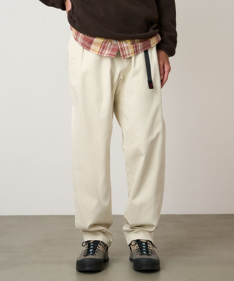 ブランドのシグネチャーモデル「グラミチパンツ」は、1980年代から変わらぬ定番として展開してきた一本です。素材には耐久性のあるエココットンツイル素材を使用。動きやすさを追求した設計で、180度の脚の可動域を確保するGramicci独自のダイヤモンドガゼットクロッチを採用し、ウエストにはナイロン製のウェビングベルトとゴム仕様を組み合わせ、快適なフィット感を実現しています。その汎用性の高さからクライミングだけでなく、ハイキングやサイクリングなどのアウトドアシーンにはもちろん、休日のリラックススタイルにも最適です。