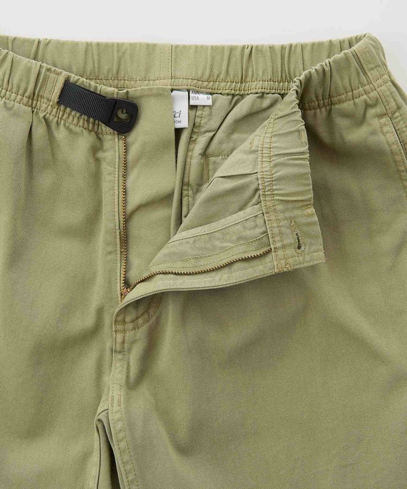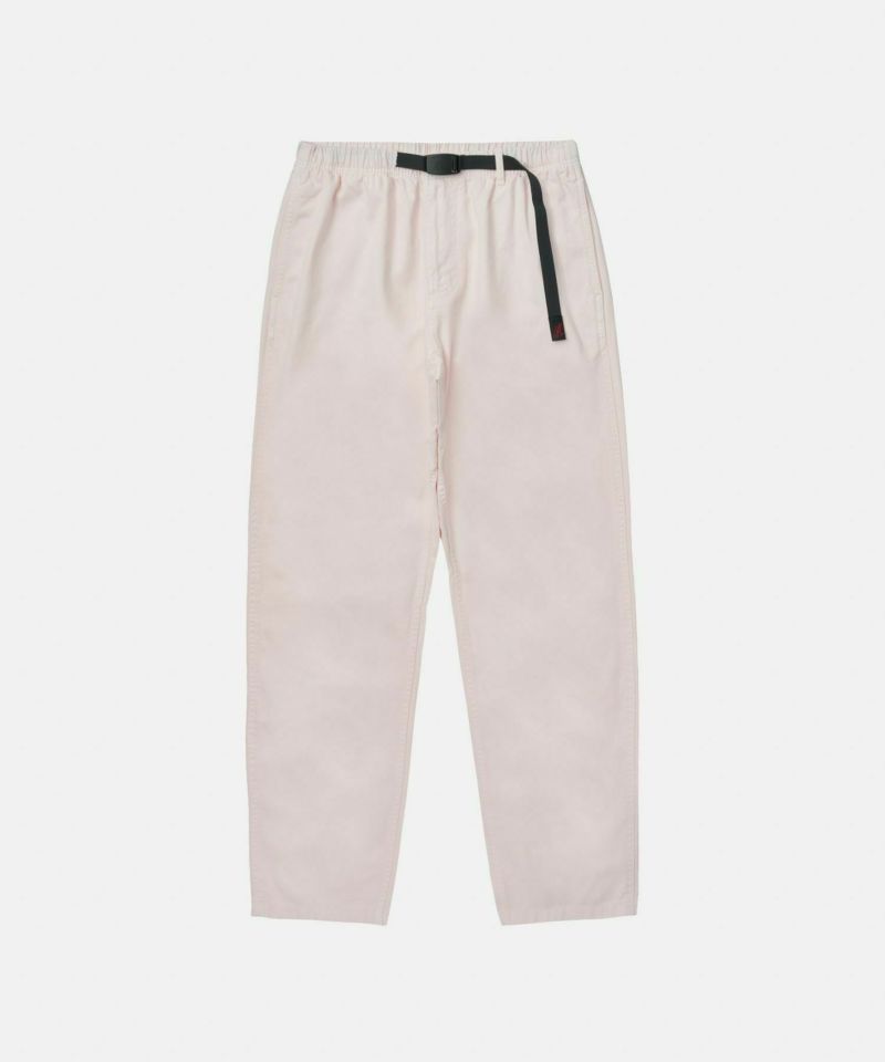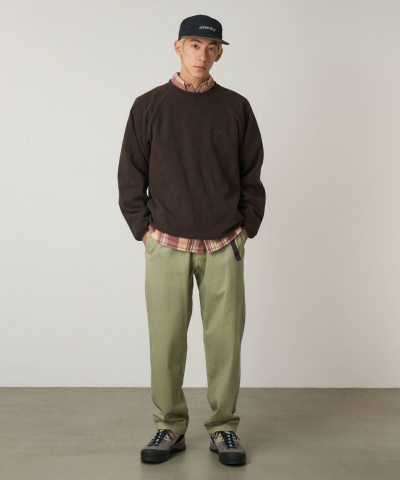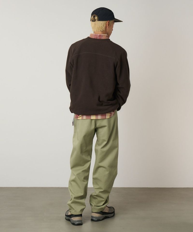 ブランドのシグネチャーモデル「グラミチパンツ」は、1980年代から変わらぬ定番として展開してきた一本です。素材には耐久性のあるエココットンツイル素材を使用。動きやすさを追求した設計で、180度の脚の可動域を確保するGramicci独自のダイヤモンドガゼットクロッチを採用し、ウエストにはナイロン製のウェビングベルトとゴム仕様を組み合わせ、快適なフィット感を実現しています。その汎用性の高さからクライミングだけでなく、ハイキングやサイクリングなどのアウトドアシーンにはもちろん、休日のリラックススタイルにも最適です。