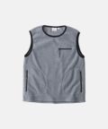 ジッパーポケットを3つ備えたプルオーバーのフリースベスト。裾はドローコード仕様で、シルエットや防風のアレンジが可能です。環境にやさしいリサイクルポリエステルによる、やや厚手で柔らかいフリース素材を使用し、軽く、暖かで、フレッシュで且つクラシックなボーダーはスタイルのアクセントにもなります。