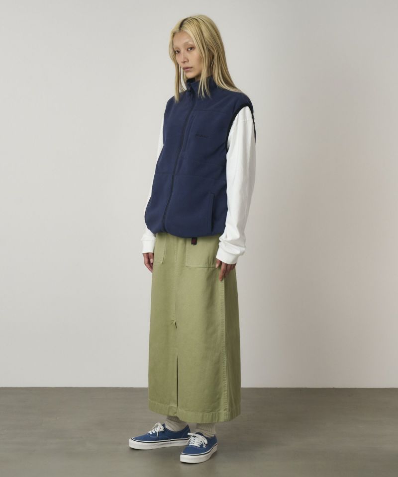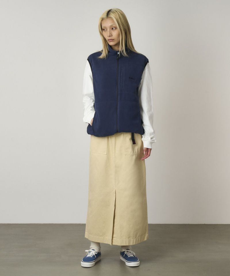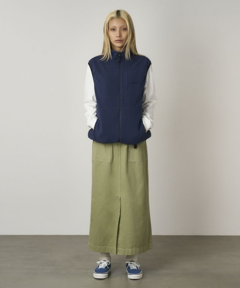 レングスは踝まであり、前中心に長めのスリットがはいったシンプルなスカートです。