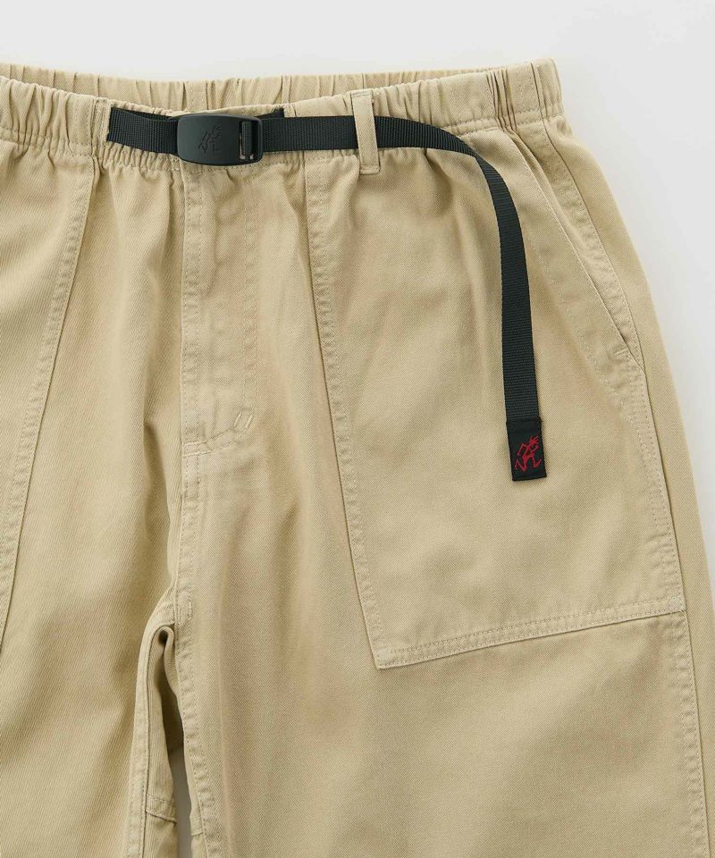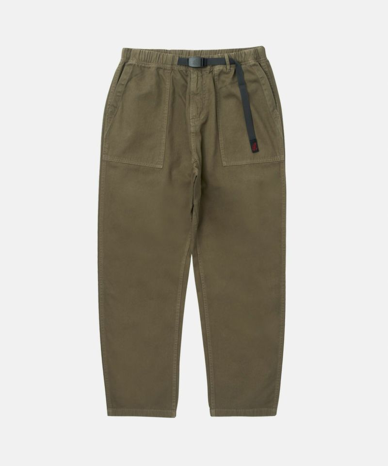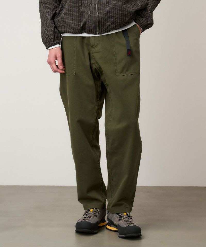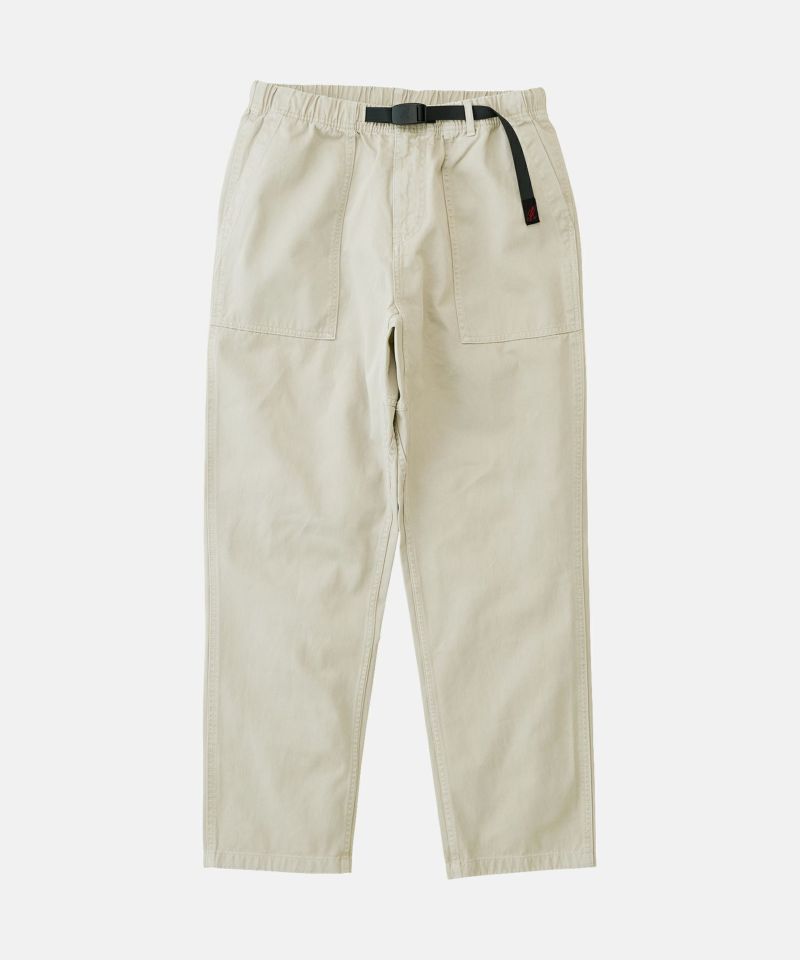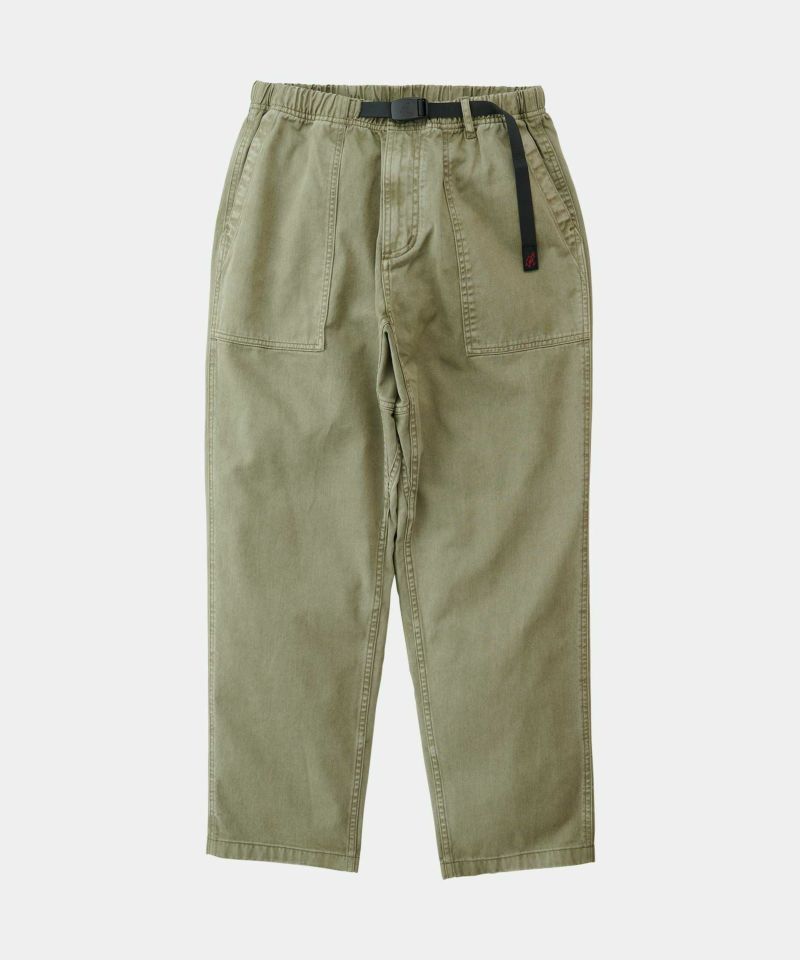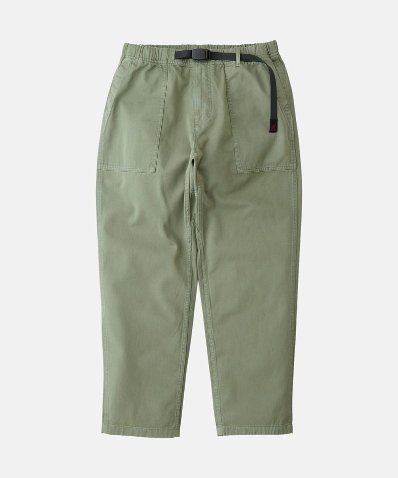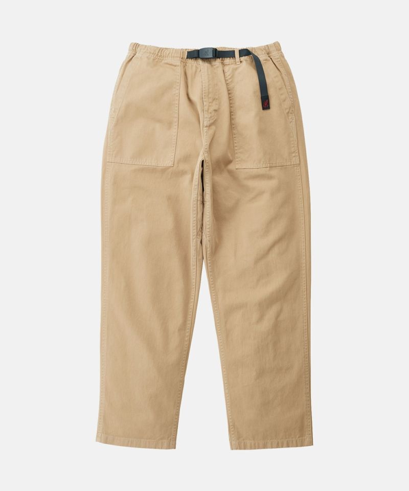 ブランドのルーツであるクライミングシーンにおける機能性に加え、左右についた大きなポケットが特徴です。ゆとりのあるヒップと腿周り、膝から裾にかけて徐々に細くなるテーパードシルエット。耐久性が高く、ハリコシのある、激しい動きにも耐えるオーガニックコットンツイルを使用し、雰囲気のある表情に染め上げています。同シルエットでクロップド丈のLOOSE TAPERED PANTも展開しています。