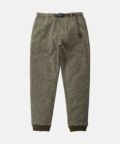 秋冬定番素材である、表面がニットのように見えるニットフリースは、伸縮性がありストレスなく着用いただけます。裏面にはマイクロフリースを貼り付け、風を通しにくく保温性にも優れています。裾にかけて徐々に細くなリ、裾口はリブ仕様になった、細身のシルエットです。
