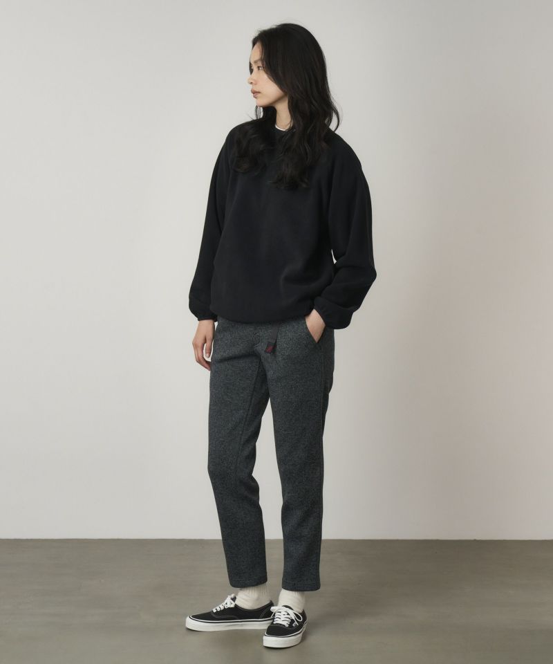 ・Gramicciの秋冬定番素材である、表面がニットのように見えるニットフリースを使用し、伸縮性がありストレスなく着用可能