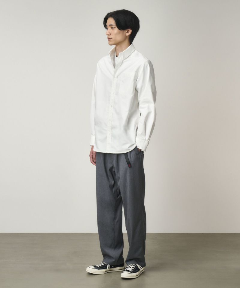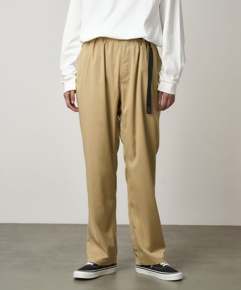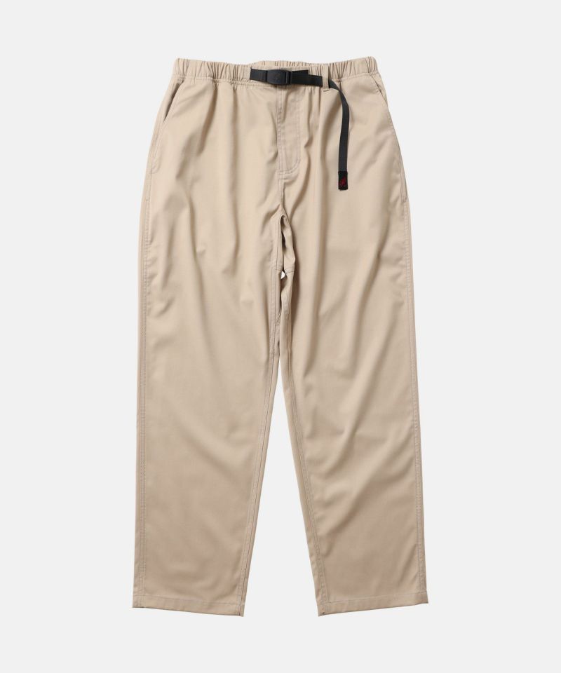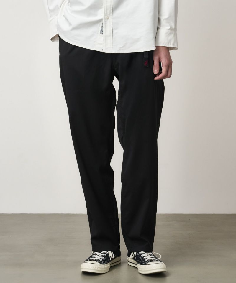 日本限定モデル、Gramicciのアーカイブアイテムの中から、人気アイテムが復活したラインナップ。 もう1度欲しい商品が形になった今季の日本限定商品です。ブランドのルーツであるクライミングシーンにおける機能性を残しつつ、現代のライフスタイルに合わせたルーズシルエットです。ヒップと腿周りにゆとりを持たせ、膝から裾にかけて徐々に細くなるシルエットです。STRETCH GABARDINEは、少し光沢感があり滑らかでドレープ性に優れています。サマーウールのようなサラっとした質感でシワになり難いのが特徴です。ストレッチも入っており、ストレスなく着用頂けます。