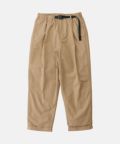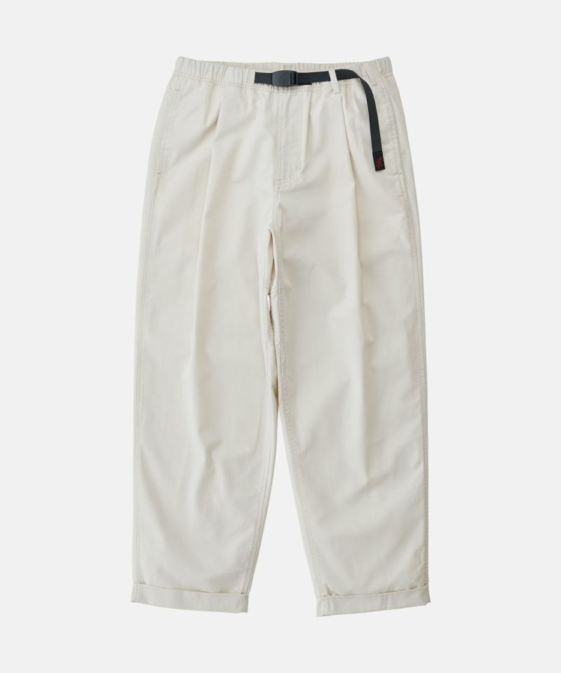 日本限定モデル、Gramicciのアーカイブアイテムの中から、人気アイテムが復活したラインナップ。 もう1度欲しい商品が形になった今季の日本限定商品です。ブランドのルーツであるクライミングシーンにおける機能性を残しつつ、現代のライフスタイルに合わせてデザインした、ルーズシルエットパンツです。タックを入れることで腰やと腿周りにゆとりを持たせ、膝から裾にかけて徐々に細くなるシルエット。また裾はダブル仕様になっています。ポリエステルとコットンの混紡生地で、耐久性の高さとメンテナンスのしやすさが特徴のT/C ツイル素材で日本限定モデルとして登場です。
