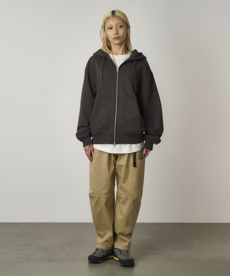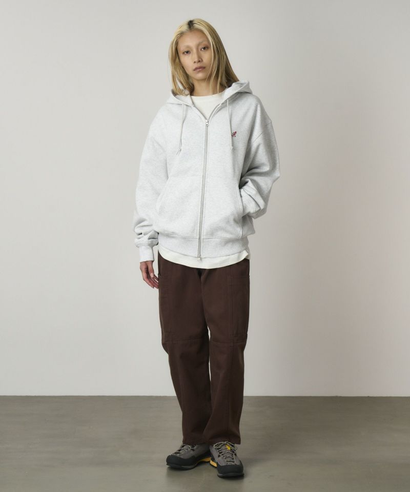 左胸にRUNNINGMANが刺繍されたジップアップスウェットパーカは、型崩れしにくく、使うほどに肌馴染みがよく、毎シーズン更新される色展開もたのしみの一つです。内側は起毛され保温性もあります。
