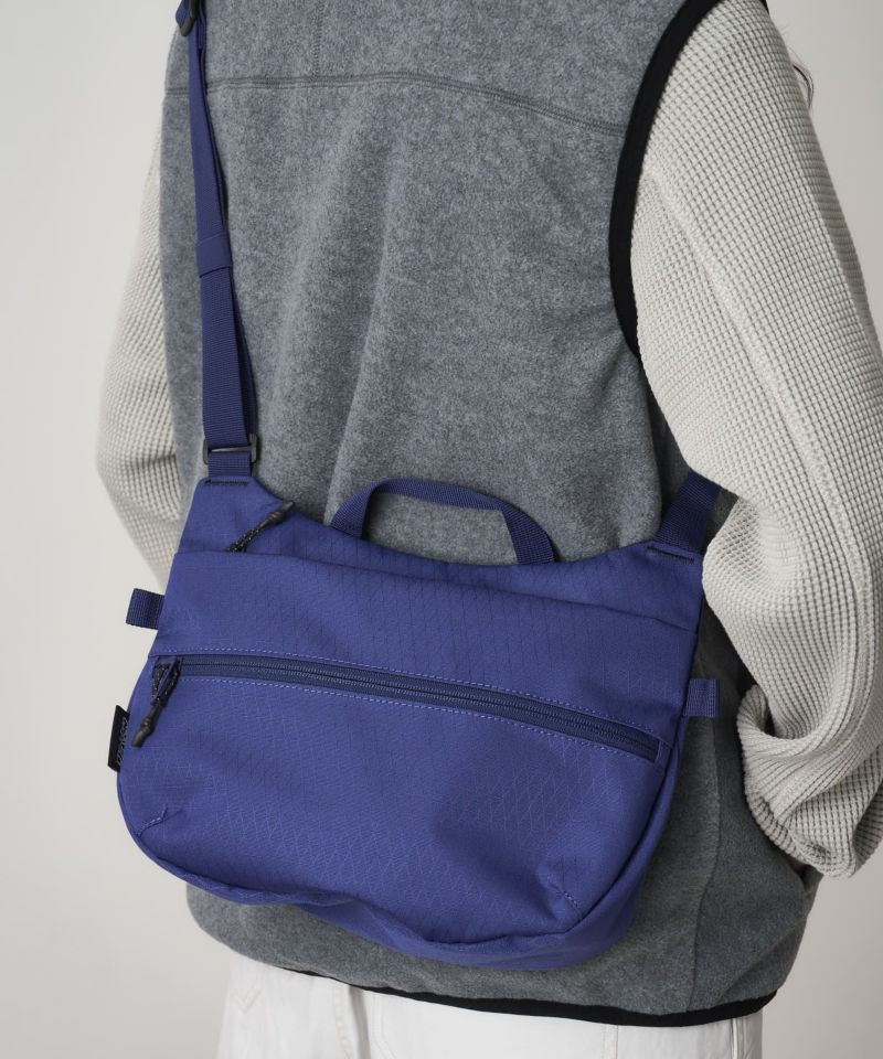 ショルダーと手持ちの2WAYで、2ルーム仕様、メインルームの内側には1ポケットを備えています。廃材から100%リサイクルされたポリエステル糸によるCORDURA?ファブリックは、軽量且つ、引裂、摩擦、摩耗に対して優れた耐久性があります。配色糸を用い、ドビー織りでダイヤチェック柄RIPSTOPを構成、強度に加え見た目にもインパクトがあります。