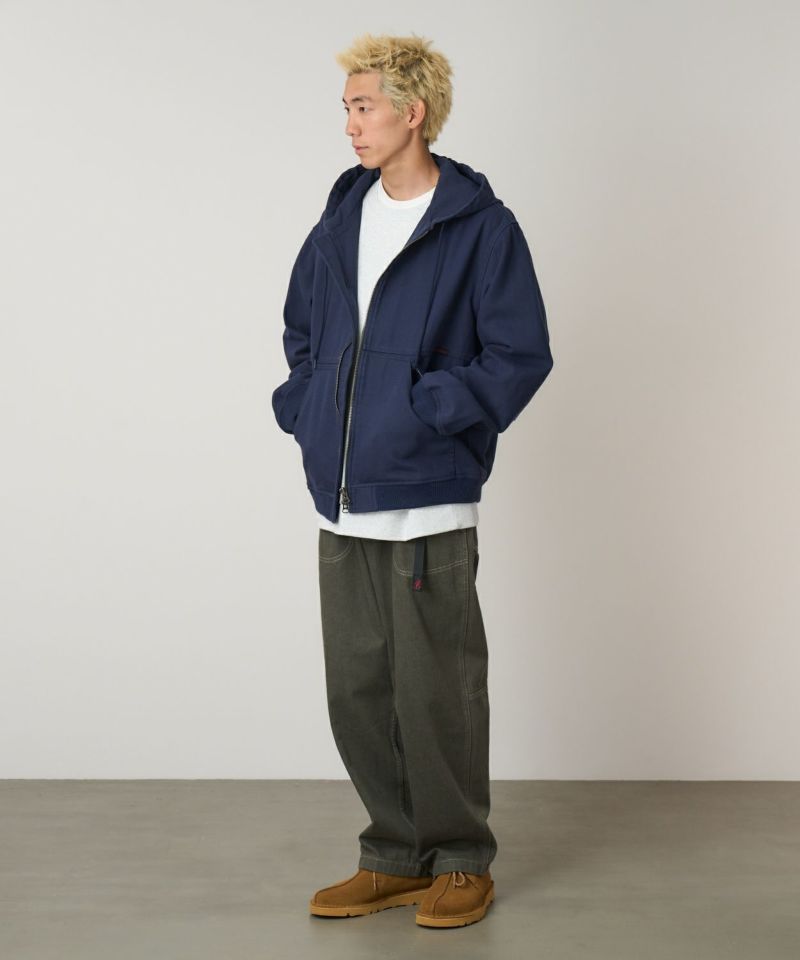 1980年代、カリフォルニアの小さな倉庫で、クライマーが欲しい機能をすべて具現したGRAMICCIブランドは誕生しました。その当時の空気感を表現したオリジナルグラミチ "O.G." シリーズ。太番手の糸で織り上げたタフなキャンバス素材を使用したフーディジャケット。袖口と裾周りにニットリブ、肘にはタック、またトリプルステッチ仕様になっています。
