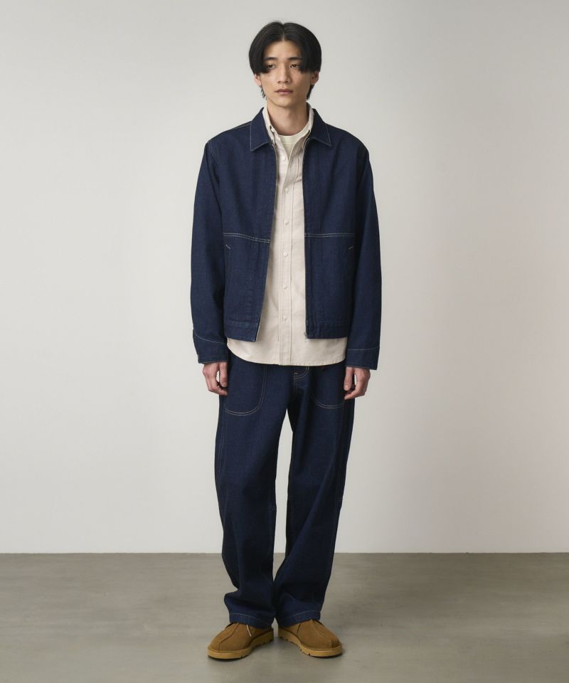 不規則な節があるスラブ糸で織った12オンスのデニム地は、表面に独特な凹凸感があります。日本産では希少なカラーデニムを使用した、シンプルなデザインのフロントジップアップジャケットは、どんなスタイルにも合せていただけます。袖口はドット釦によるサイズアレンジが可能です。