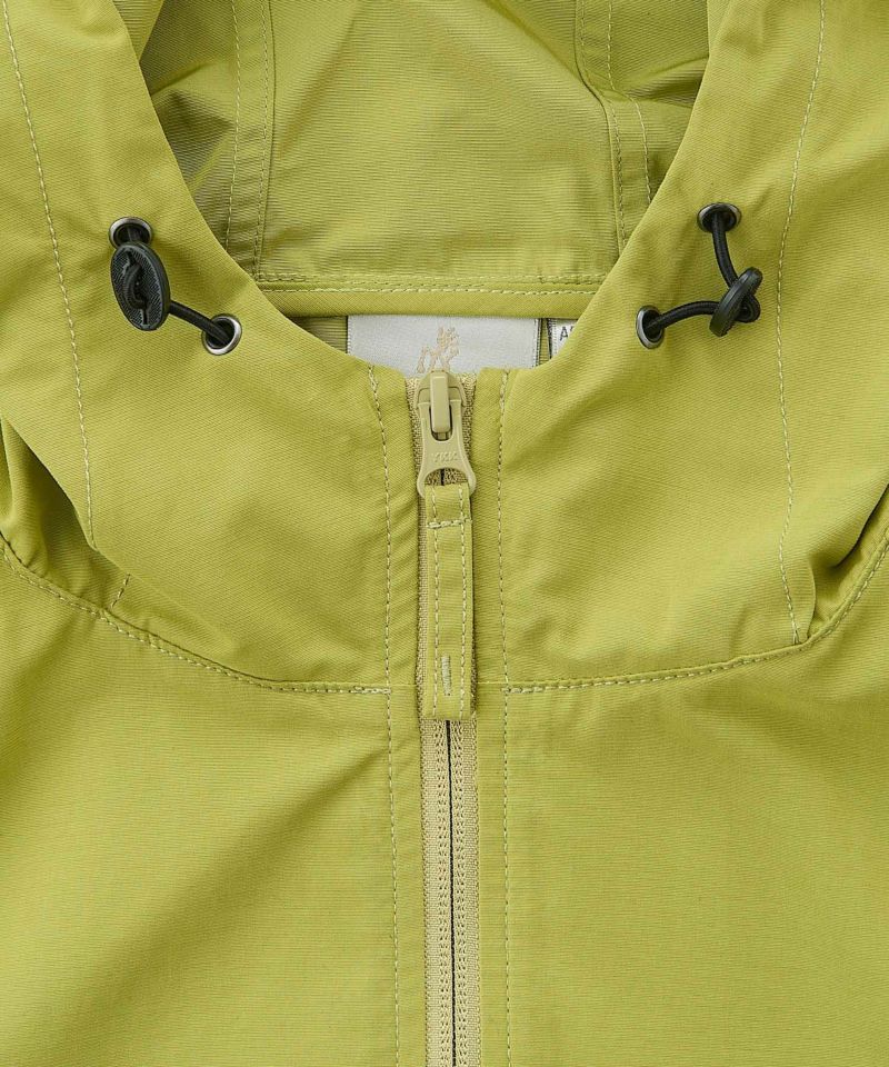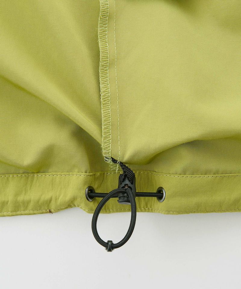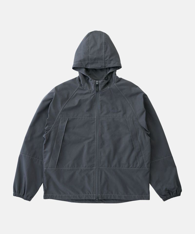 天然繊維と合繊をブレンドしたハイブリッドな高密度素材で、表面は微起毛しているため、独特のヌメ感があり、滑らかでソフトな質感、加えて程よいハリも持ち合わせています。両脇のボリュームポケットを備えたラグランフーデッドジャケットは、後身頃にベンチレーション機能も持ち合わせています。