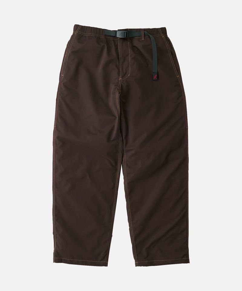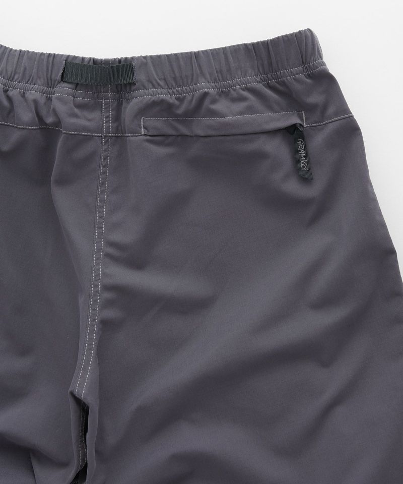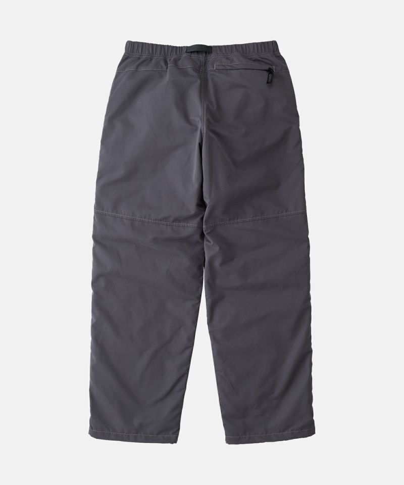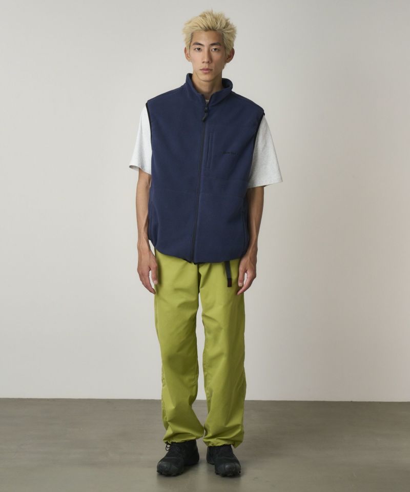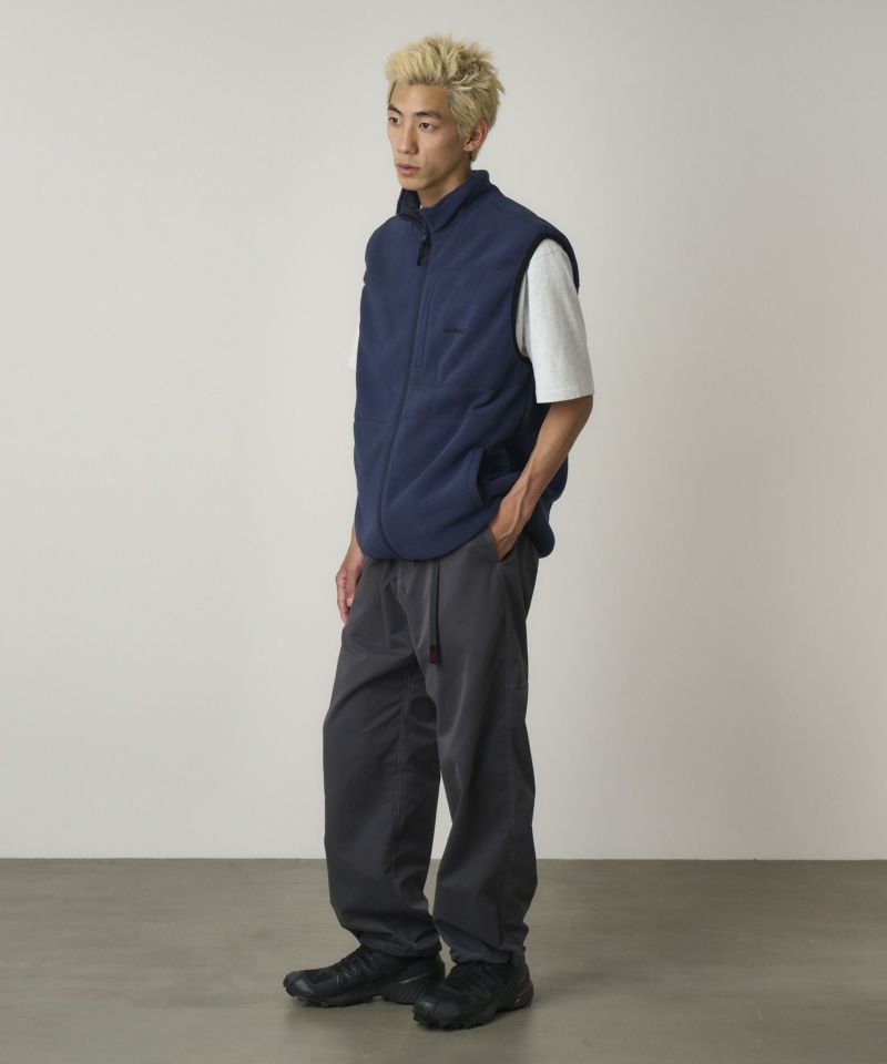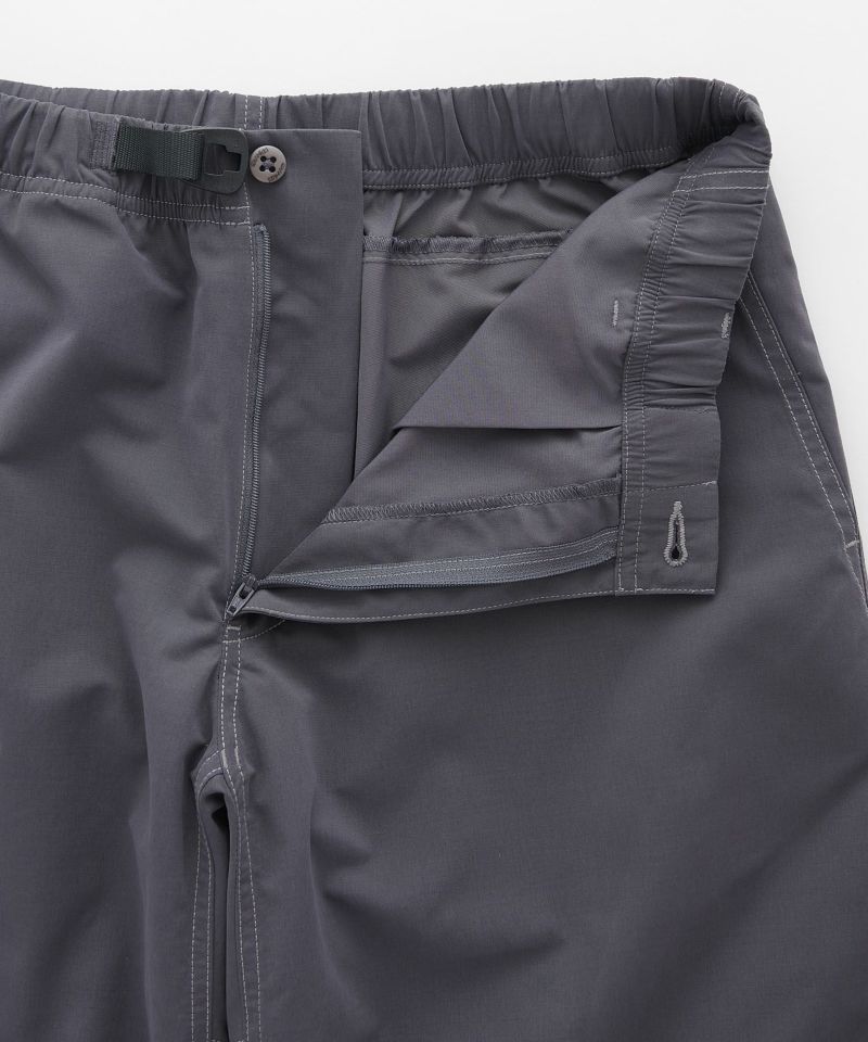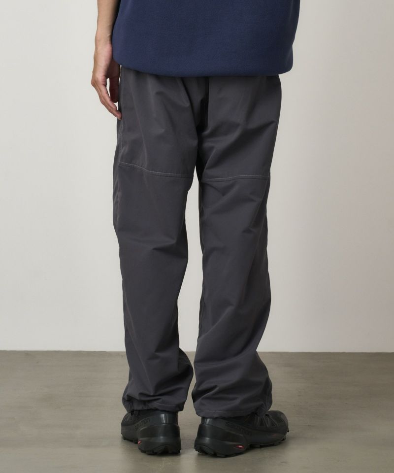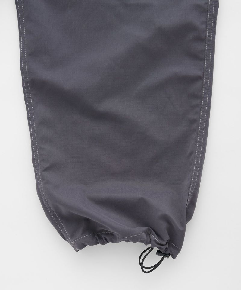 天然繊維と合繊をブレンドしたハイブリッドな高密度素材で、表面は微起毛しているため、独特のヌメ感があり、滑らかでソフトな質感、加えて程よいハリも持ち合わせています。ゆとりのあるシルエットで、裾口はドローコード、後身頃にジップポケットを備えています。