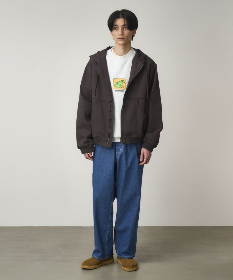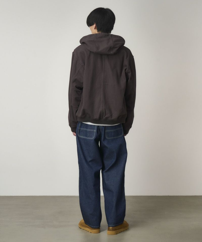 しっかりした質感でハリコシのある、環境配慮エココットンを使用した11オンスデニムの5pocketパンツは、ホワイトステッチでフレッシュな印象です。股上は深く、腰周りはスッキリとしたフィットで、裾巾の広いバギーストレートシルエットです。