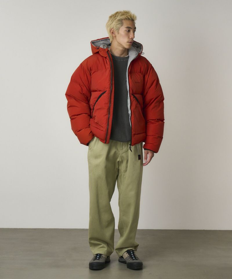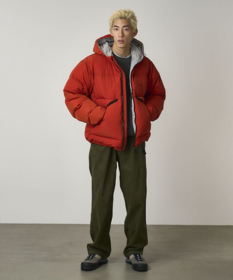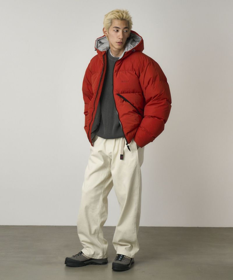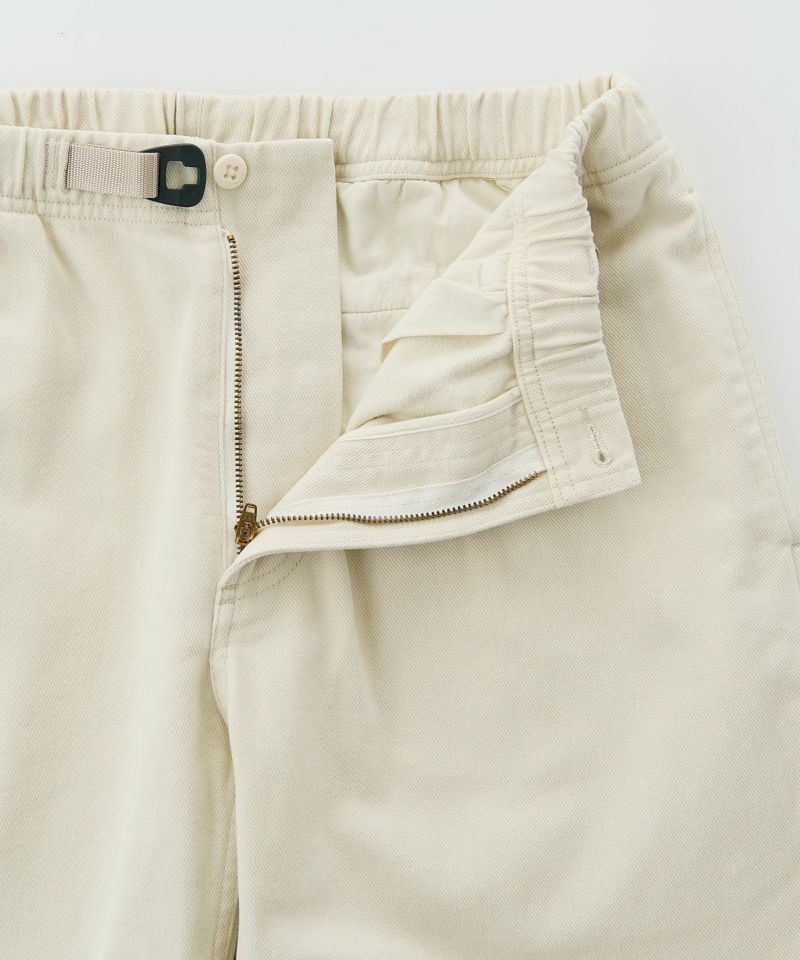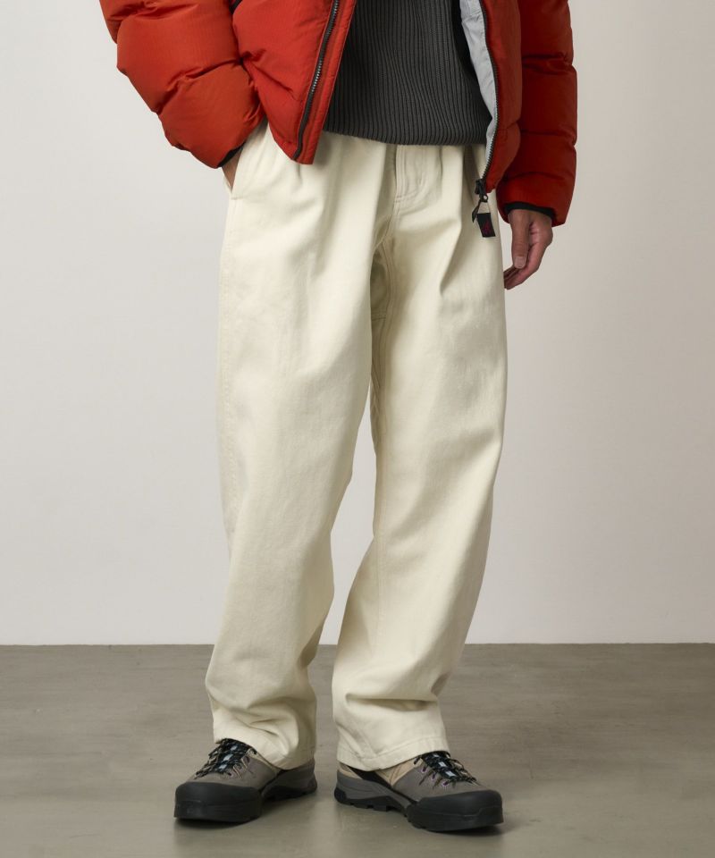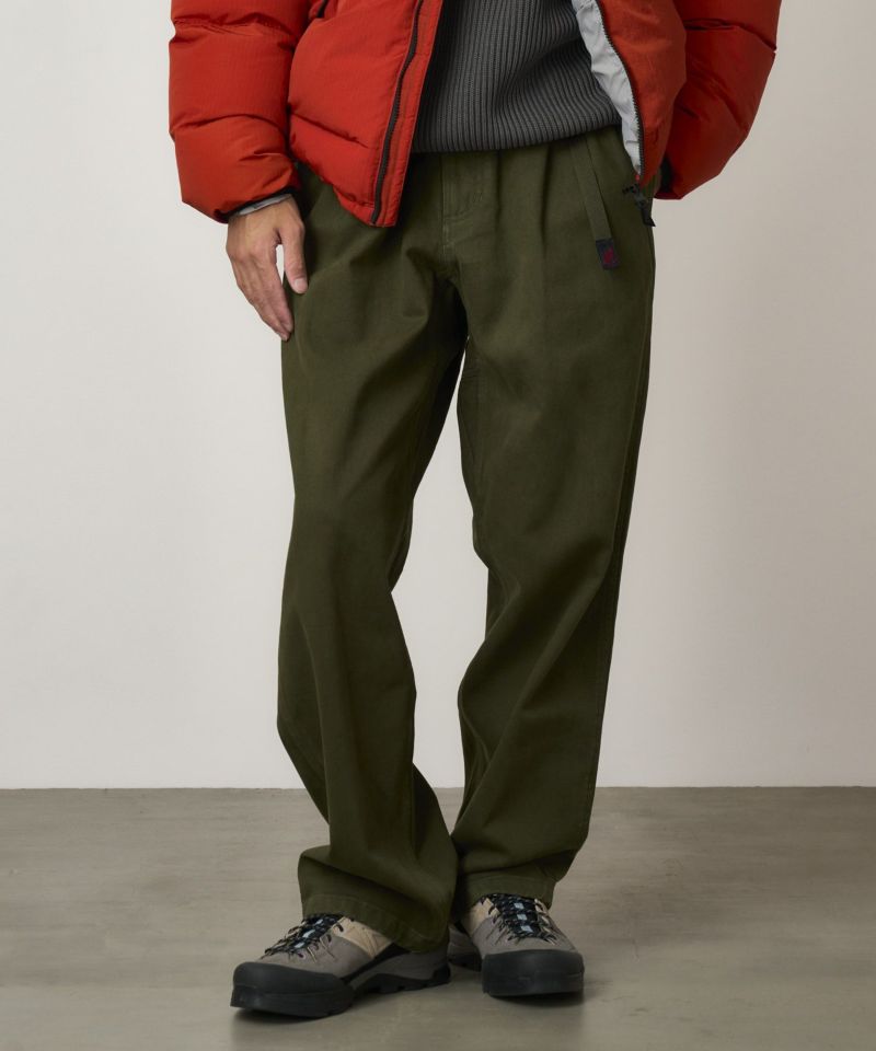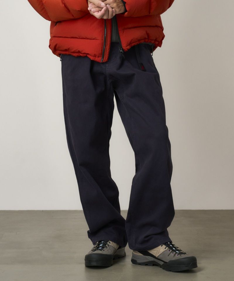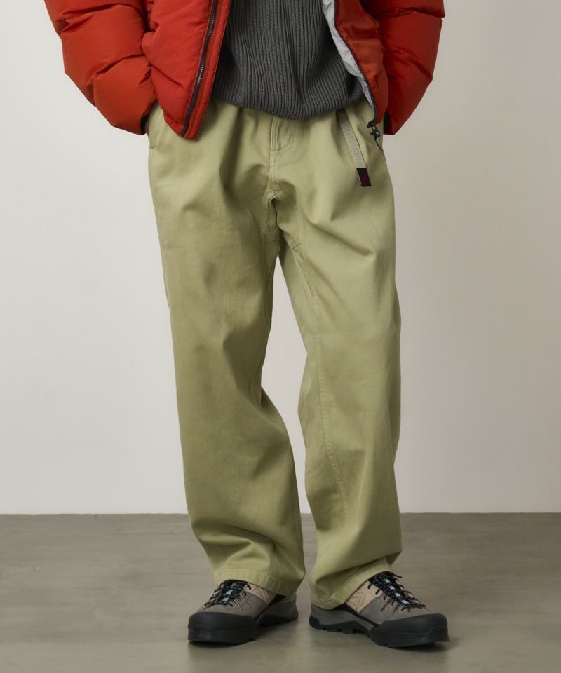 180度の開脚を可能としたガセットクロッチ、片手で調整できるウェビングベルト&イージーウェスト。1980年代、クライマーとしての体験をもとに、クライマーが欲しい機能をすべて具現した革新的なパンツとしてGRAMICCI PANTは誕生しました。表面を微起毛した温かな肌触りのツイル素材を使用し、雰囲気のある表情に染め上げています。