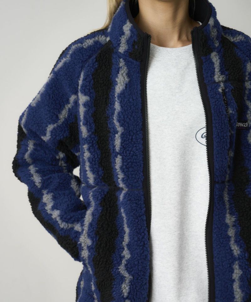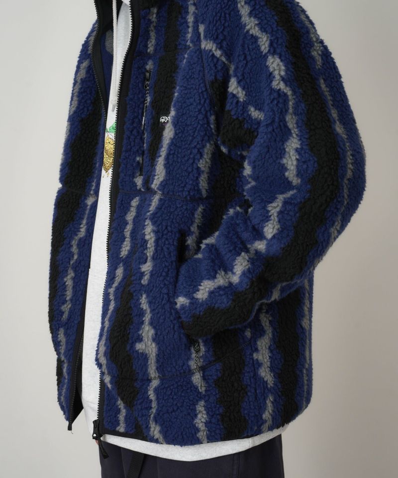 羊のようにモコモコした、暖かくボリューム感のある、オリジナルジャガードのスタンドカラージャケットです。衿端・袖口・裾廻りにはニットテープを使用し、風の侵入を軽減します。両脇と左胸にジップ付きポケットを備えています。