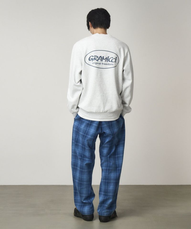 型崩れしにくく、使うほどに肌馴染みがよいクルーネックのスウェットは、"GRAMICCI"な、ロゴからグラフィックまで多岐にわたるデザインが充実しています。内側は起毛され保温性もあります。
