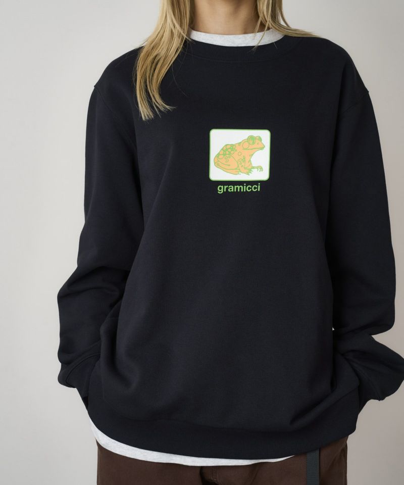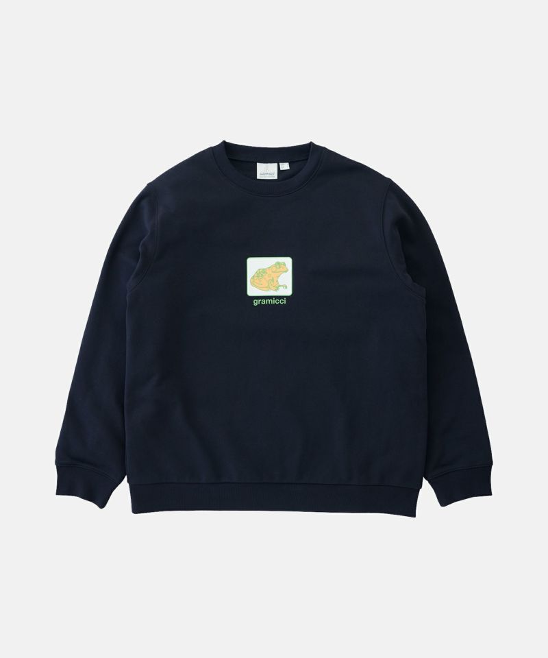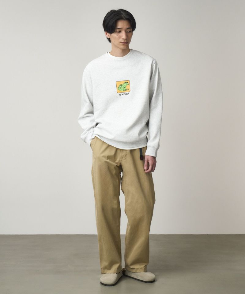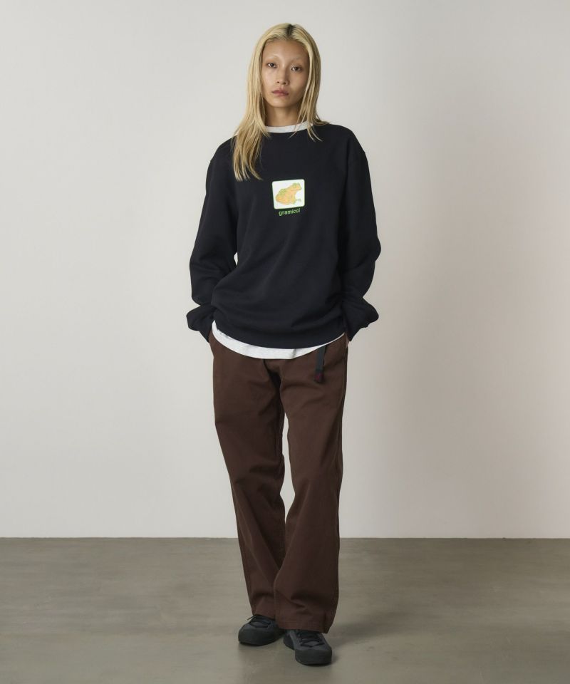 型崩れしにくく、使うほどに肌馴染みがよいクルーネックのスウェットは、"GRAMICCI"な、ロゴからグラフィックまで多岐にわたるデザインが充実しています。内側は起毛され保温性もあります。