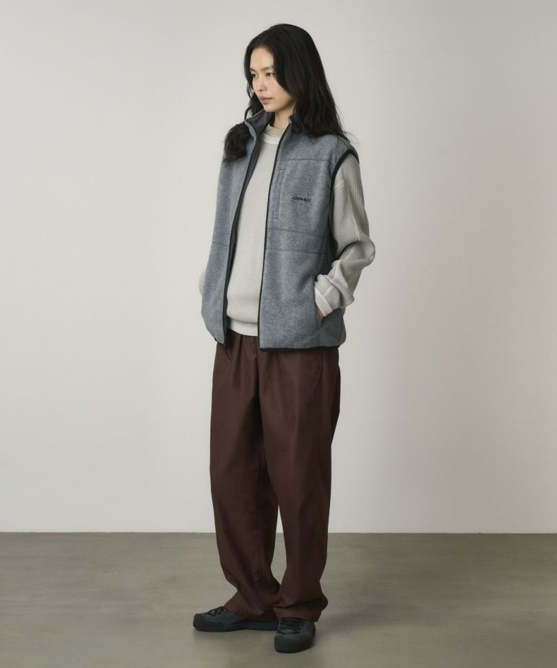 GRAMICCIでは最もゆとりのあるイージーシルエットの一つで、ウェストはゴム + ドローコード仕様の定番SWELL PANT。ピーチ起毛したコットン素材は風合いが柔らかく、しなやかでドレープ性も持ち合わせています。