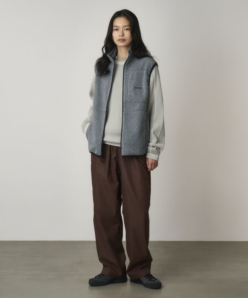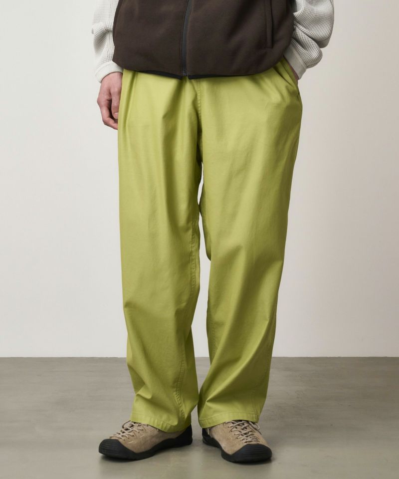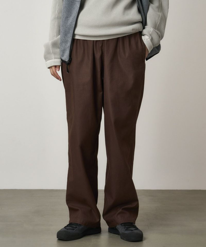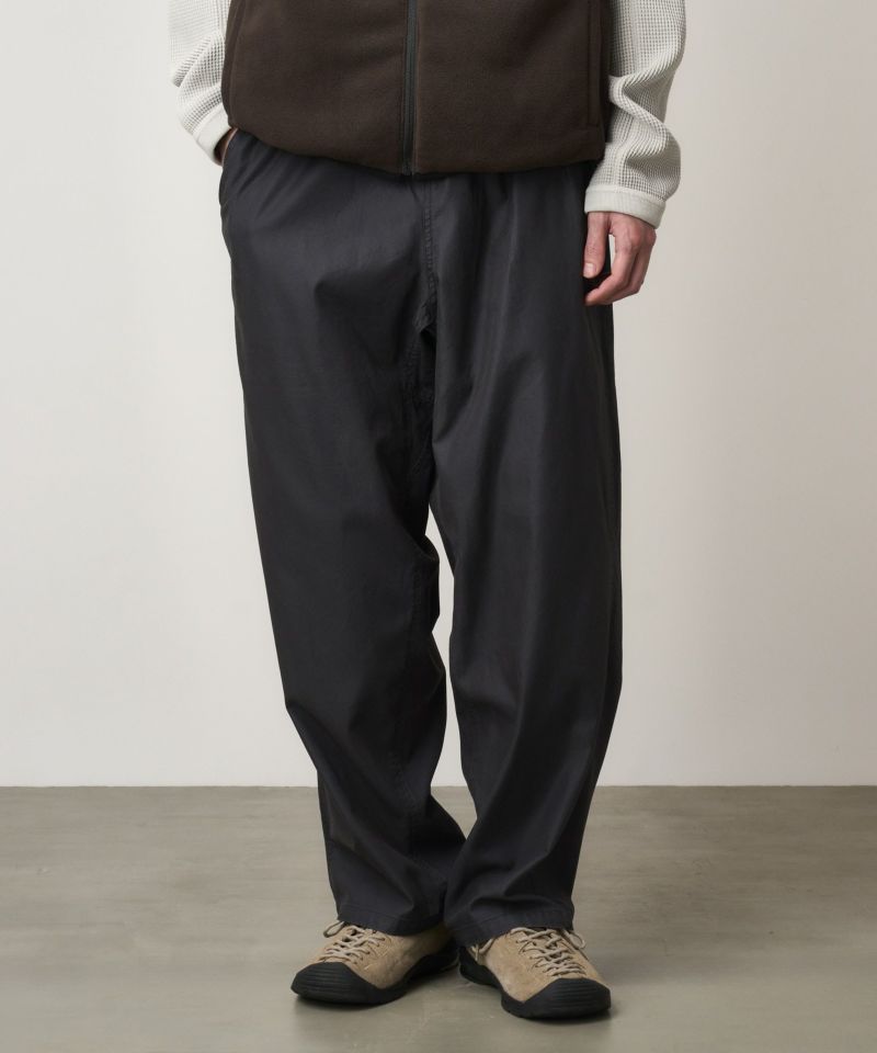 GRAMICCIでは最もゆとりのあるイージーシルエットの一つで、ウェストはゴム + ドローコード仕様の定番SWELL PANT。ピーチ起毛したコットン素材は風合いが柔らかく、しなやかでドレープ性も持ち合わせています。