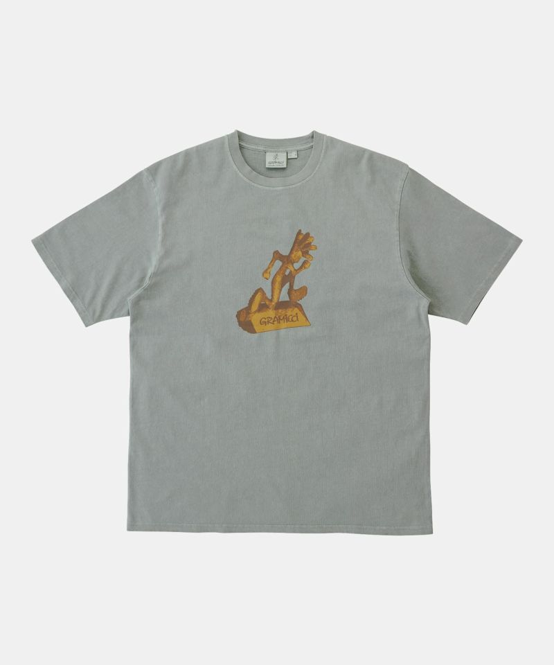 中厚手のドライタッチエココットンを使用した定番アイテム。夏はショーツと合わせて爽やかに、冬は重ね着のインナーとしても最適な、年間を通じて活躍する万能Tシャツ。シンプルでありながら、胸元に小さなグラフィック、背面には大きなグラフィックが印象的な一着です。