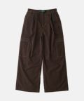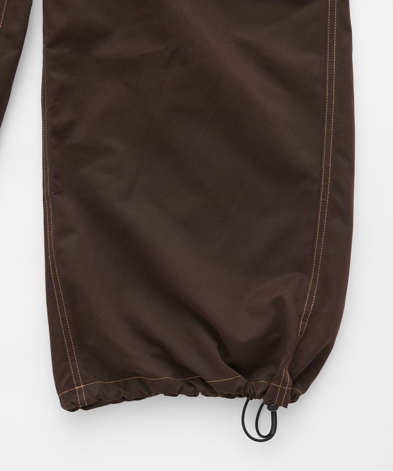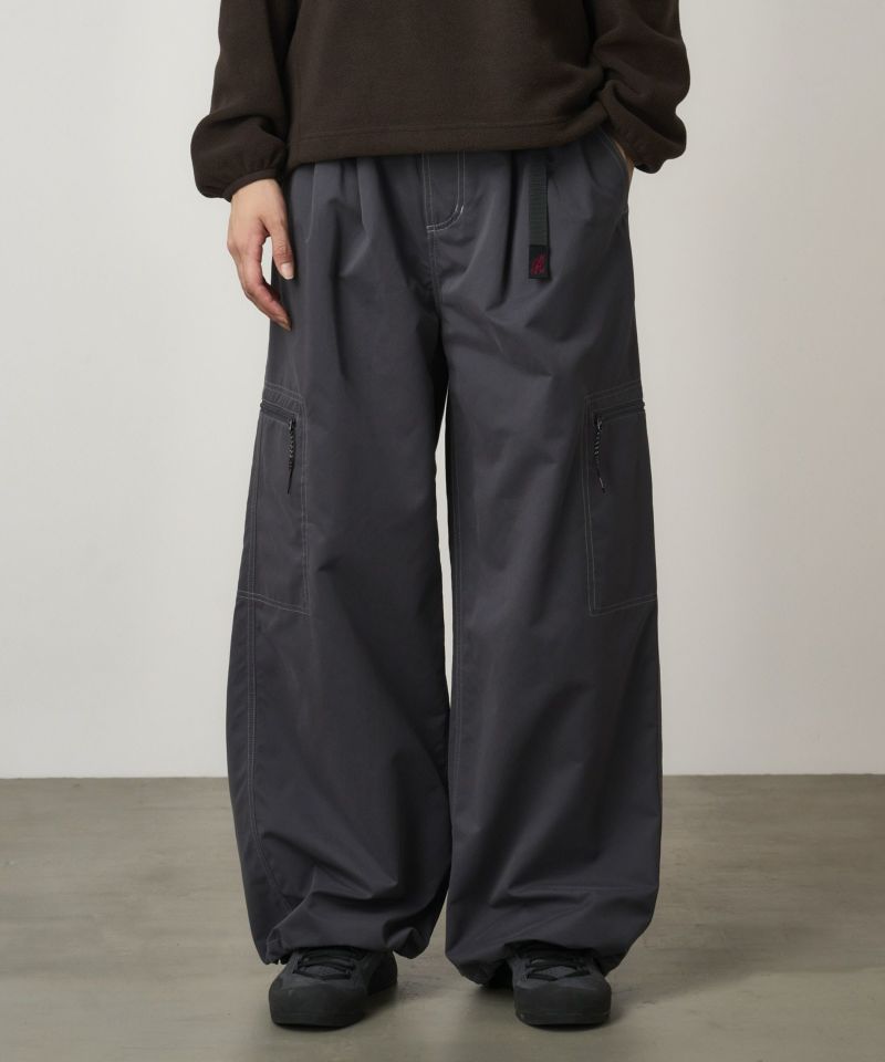 天然繊維と合繊をブレンドしたハイブリッドな高密度素材で、表面は微起毛しているため、独特のヌメ感があり、滑らかでソフトな質感、加えて程よいハリも持ち合わせています。ジッパーカーゴポケットを備えた、WOMENSでは最もワイドなシルエットで、裾口のドローコードでシルエットアレンジも可能です。
