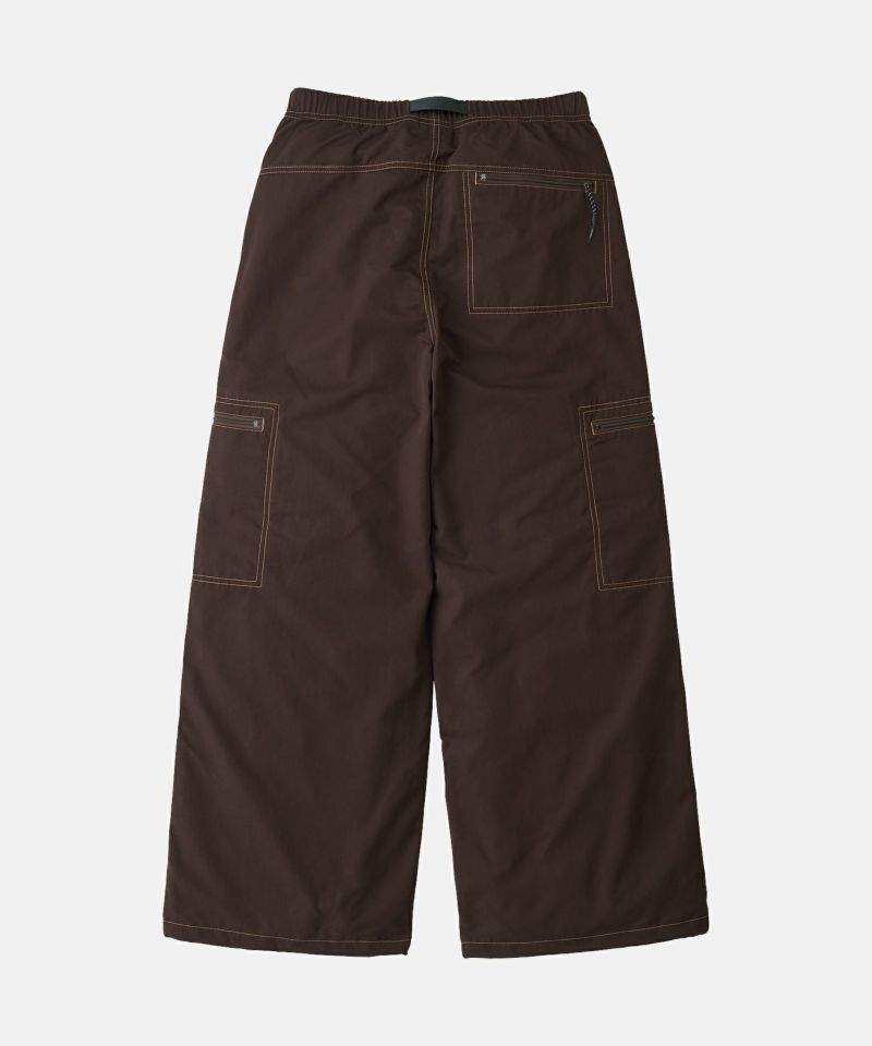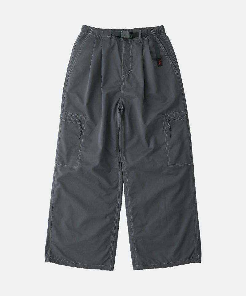 天然繊維と合繊をブレンドしたハイブリッドな高密度素材で、表面は微起毛しているため、独特のヌメ感があり、滑らかでソフトな質感、加えて程よいハリも持ち合わせています。ジッパーカーゴポケットを備えた、WOMENSでは最もワイドなシルエットで、裾口のドローコードでシルエットアレンジも可能です。