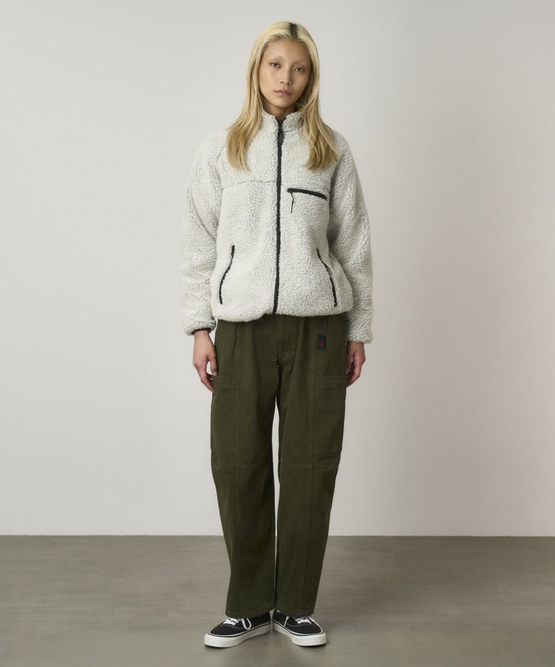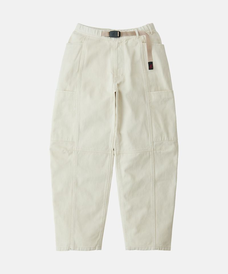 片手で調整できるウェビングベルトやイージーウェスト、180度の開脚を可能としたガセットクロッチなど、ブランドのルーツであるクライミングシーンにおける機能性を持つヴォヤジャーパンツ。前身頃から後身頃にかけての大きなポケットを4つ備えており、ゆとりのあるシルエットが特徴です。表面を微起毛した温かな肌触りのツイル素材を使用し、雰囲気のある表情に染め上げています。