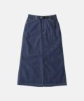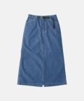 しっかりした質感でハリコシのある、環境配慮エココットンを使用した11オンスデニムを使用した、踝丈のマキシレングススカートは、ホワイトステッチでフレッシュな印象です。5pocketデザインでAラインシルエット、深めのスリットで足運びも問題ありません。