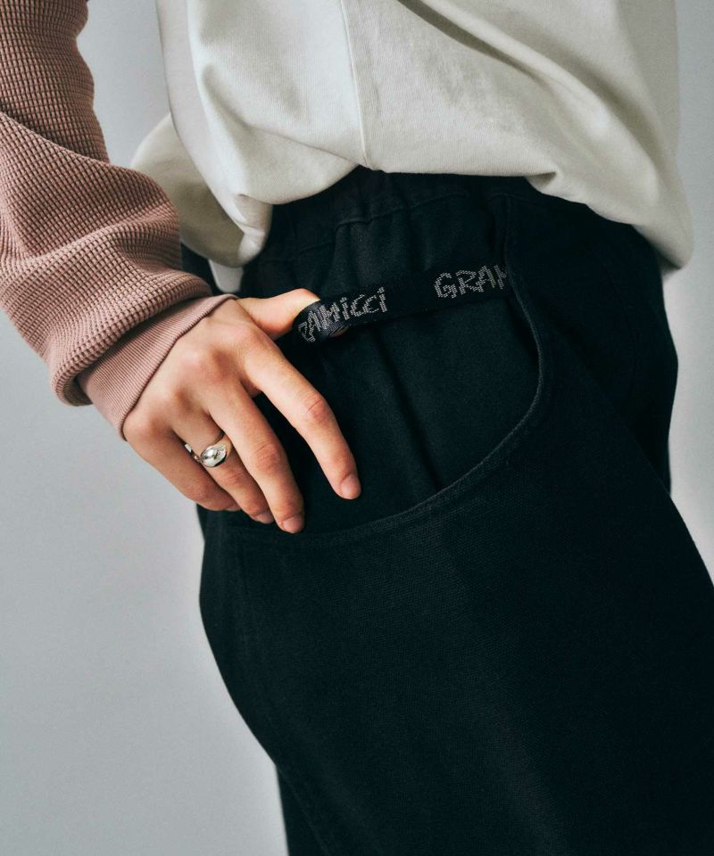 「ガジェットパンツ」は、1990年代初頭に誕生したユーティリティパンツです。クライミングパンツとペインターパンツの中間のような機能的なデザインで、前から後ろまでぐるりと覆うコントラストカラーのラップアラウンドポケットが高い収納力を発揮します。右ポケット上部には、キーやカラビナ、ボトルなどを取り付けられるウェビングテープ付き。シルエットはリラックス感のあるストレートラインで、カーゴパンツやカーペンターパンツの代わりにもおすすめの一本です。