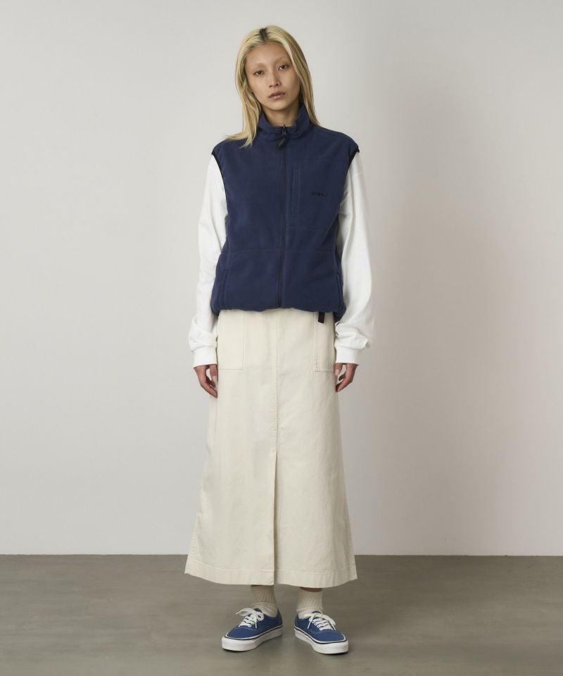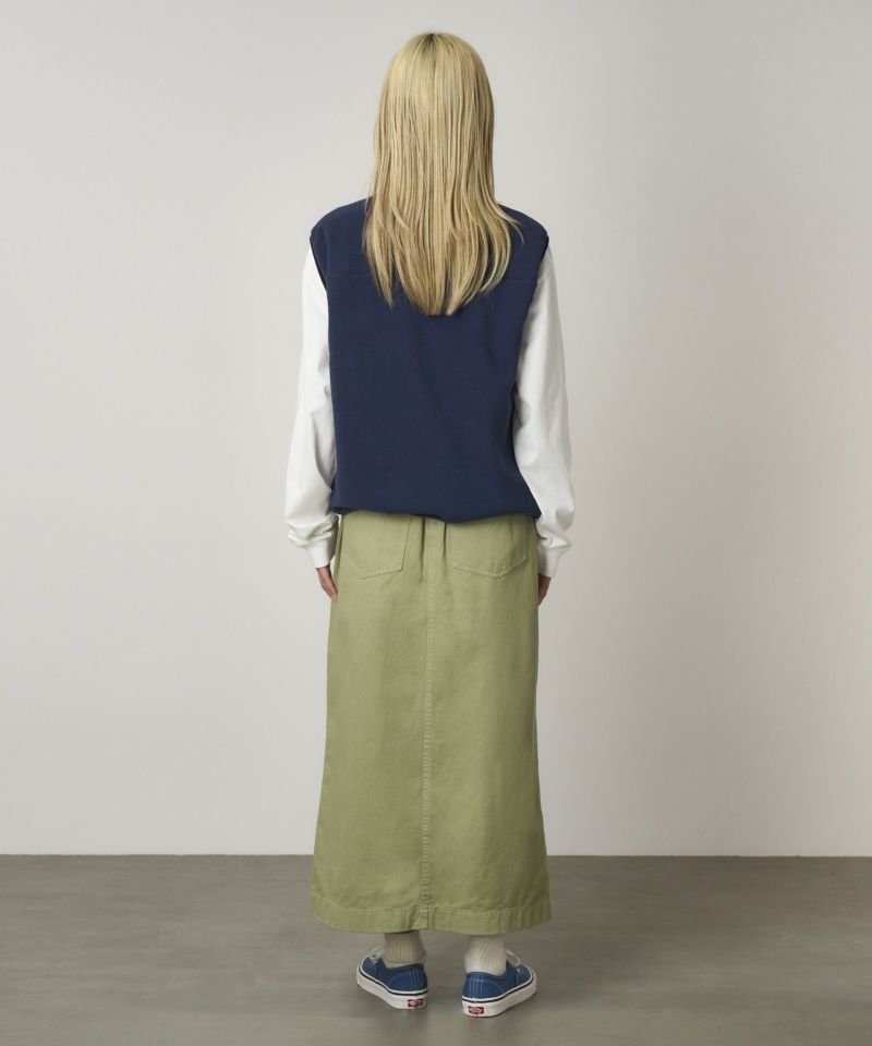 レングスは踝まであり、前中心に長めのスリットがはいったシンプルなスカートです。