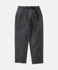 ブランドのルーツであるクライミングシーンにおける機能性に加え、左右についた大きなポケットが特徴です。ゆとりのあるヒップと腿周り、膝から裾にかけて徐々に細くなるテーパードシルエット。耐久性が高く、ハリコシのある、激しい動きにも耐えるオーガニックコットンツイルを使用し、雰囲気のある表情に染め上げています。同シルエットでクロップド丈のLOOSE TAPERED PANTも展開しています。