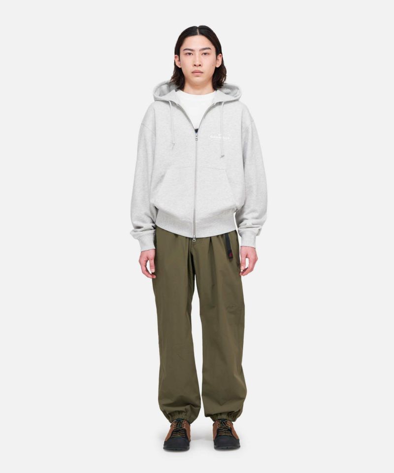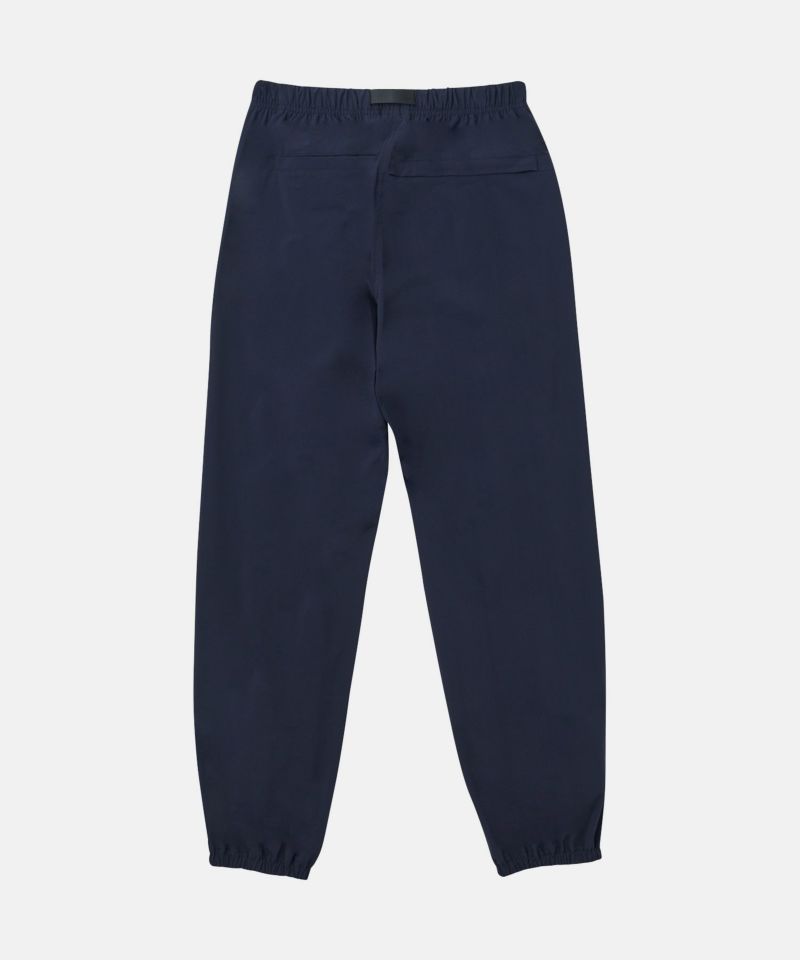ややゆとりのあるシルエットで、裾口がゴム仕様のトラックパンツ。タテ・ヨコ・斜めに伸びる伸縮性に富んだ4WAYストレッチの為、ストレスフリーで着用いただけます。軽量でタフなナイロン素材でドライタッチと製品洗いを施したワッシャー感が特徴。また、右身頃にロゴ刺繍が入っています。