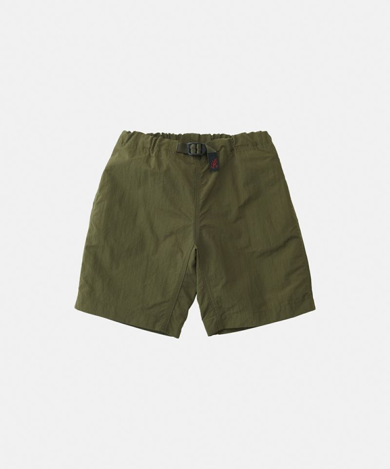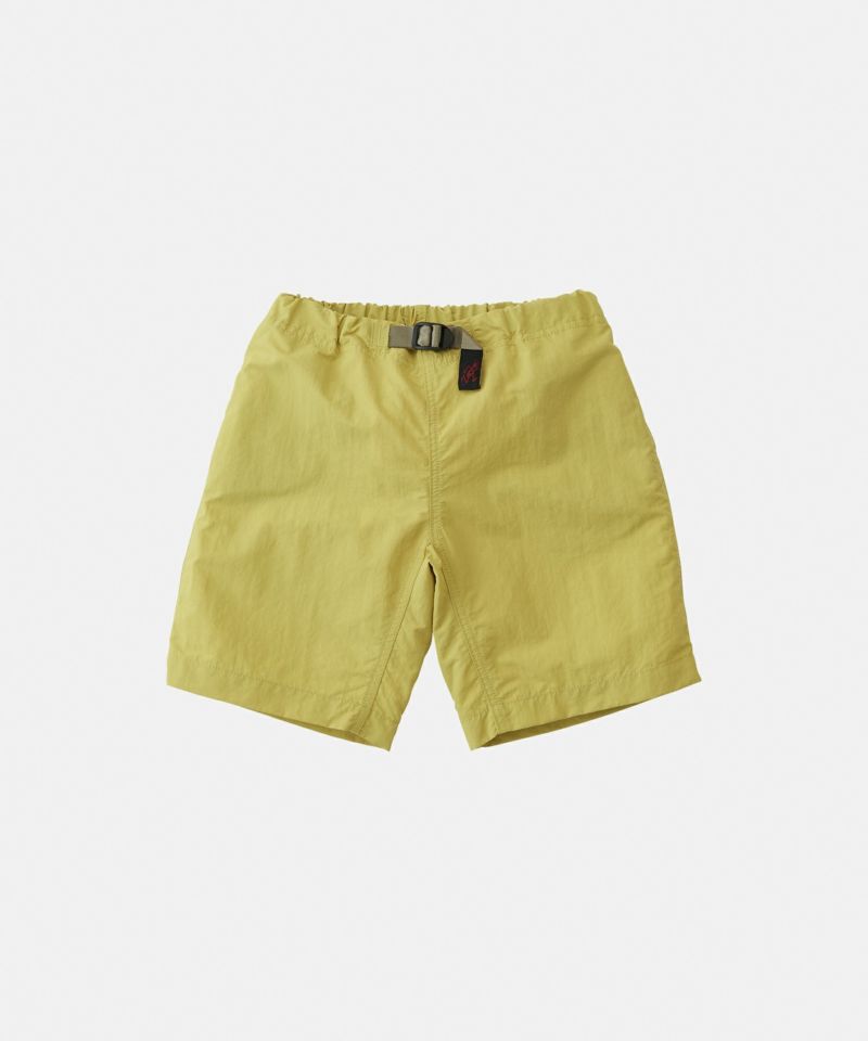 元気に動き回る子供たちにも、ブランドのルーツであるクライミングの機能性はぴったりです。ドライタッチと製品洗いを施したようなワッシャー感が特徴のGramicci DURABLE NYLONを使用し、撥水性に優れ乾きやすく、塩素にも対応しているので、海からプールまで水辺でも活躍します。片手で調整できるウェビングベルト&イージーウェスト仕様は、巻込み等の危険があるためフェイクで、内側のゴムアジャスターでのサイズ調整仕様となります。