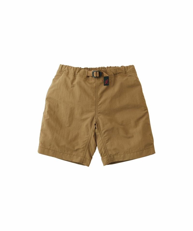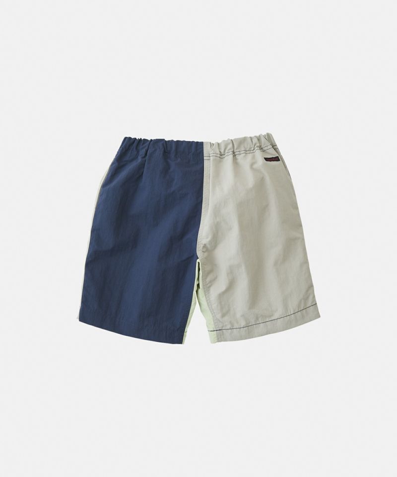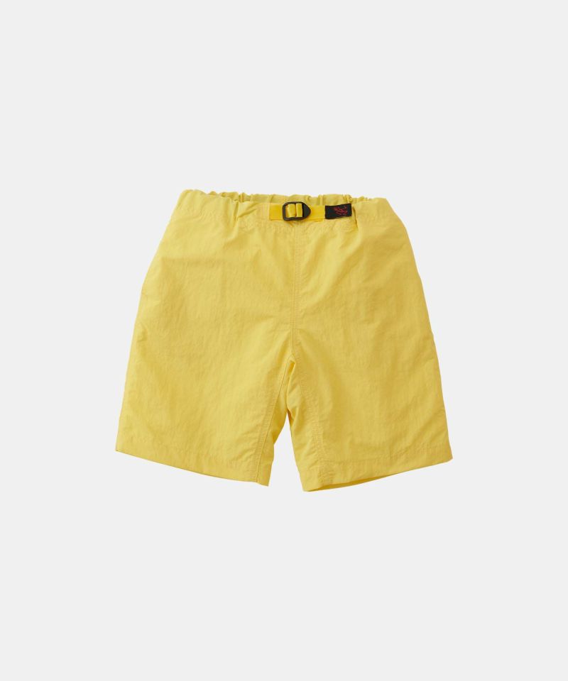 元気に動き回る子供たちにも、ブランドのルーツであるクライミングの機能性はぴったりです。ドライタッチと製品洗いを施したようなワッシャー感が特徴のGramicci DURABLE NYLONを使用し、撥水性に優れ乾きやすく、塩素にも対応しているので、海からプールまで水辺でも活躍します。片手で調整できるウェビングベルト&イージーウェスト仕様は、巻込み等の危険があるためフェイクで、内側のゴムアジャスターでのサイズ調整仕様となります。