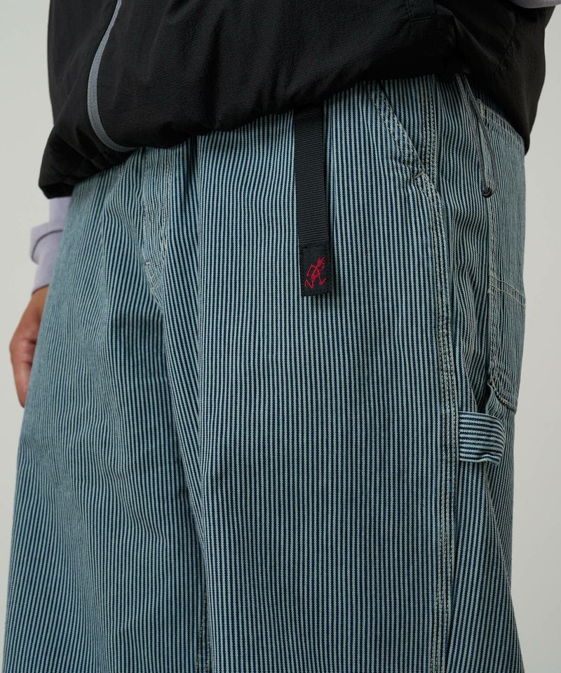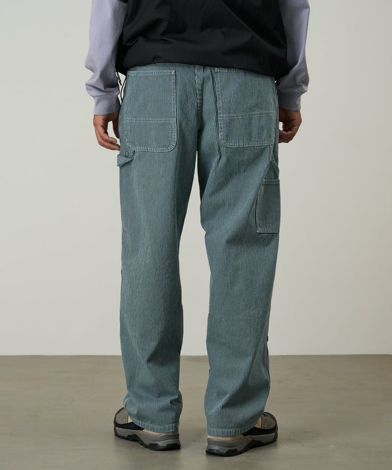 6つのポケット、ループといったワークディテールを備えた、ゆとりあるシルエットのワークパンツは、インディゴとホワイトのストライプが特徴の10oz.ヒッコリーを製品染めすることで、使い込むほどにストライプ部分のコントラストに変化が生まれ、独特の風合を楽しむことができます。