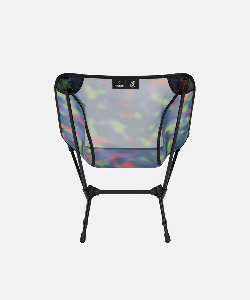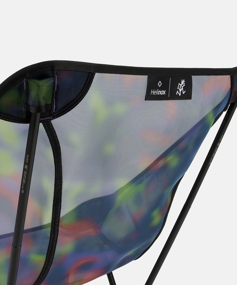 Helinoxの代表作であるChair Oneをベースに、Gramicciの視点で再構築。透け感のあるタイダイ調メッシュ素材を採用し、アウトドアシーンに新たな表情をもたらします。