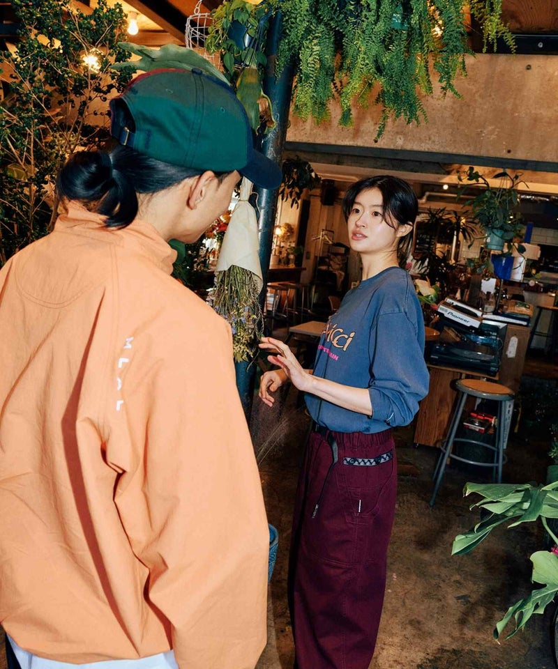 ALWAYTHの定番である<CITY GUIDE PANTS>をベースに、Gramicciのウェビングベルトを組み合わせて生まれたツイルパンツ。裾に配したドローコードやウェビングベルト先端のシルバーネームタグなど、細部にまでこだわりを感じられるデザインです。