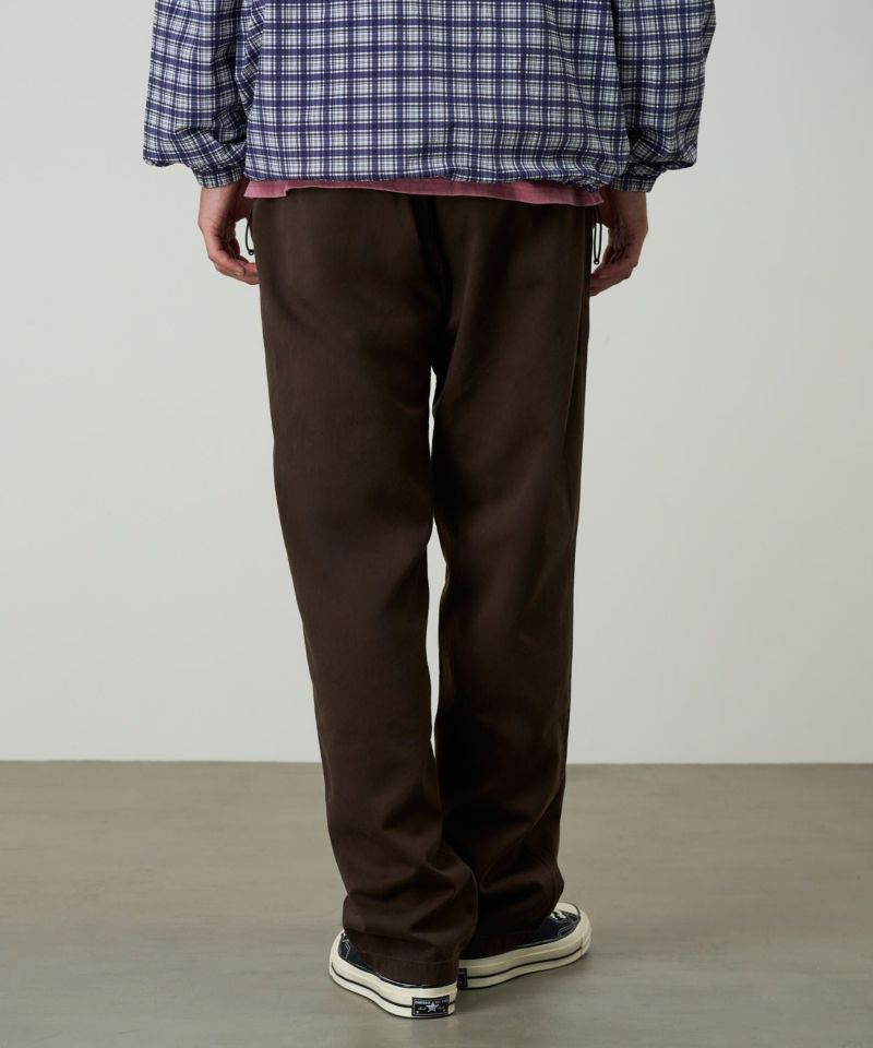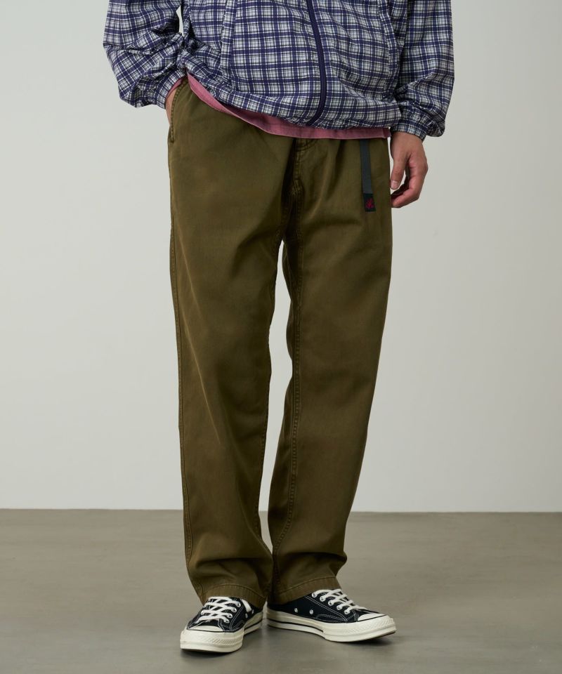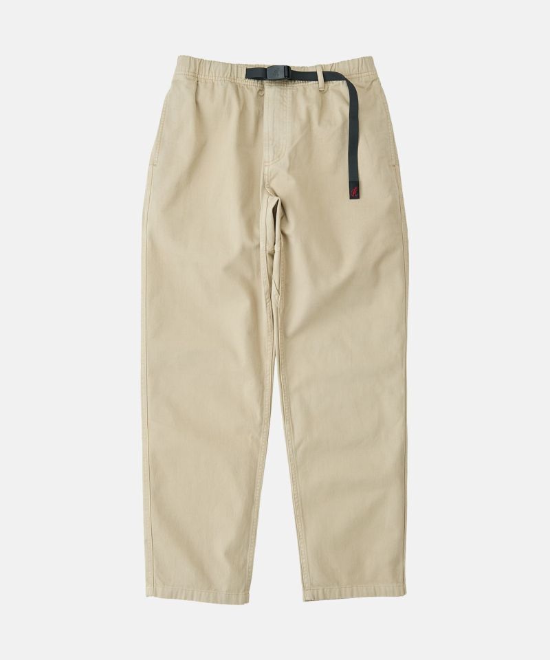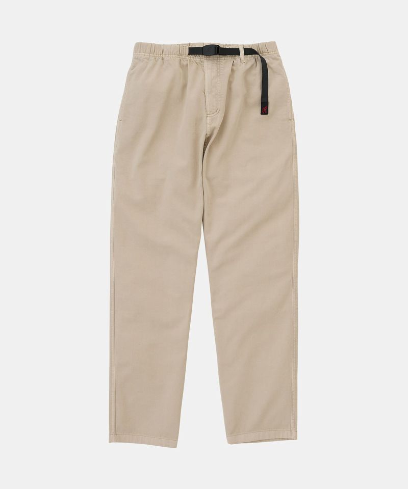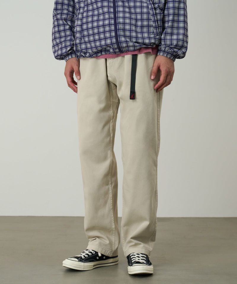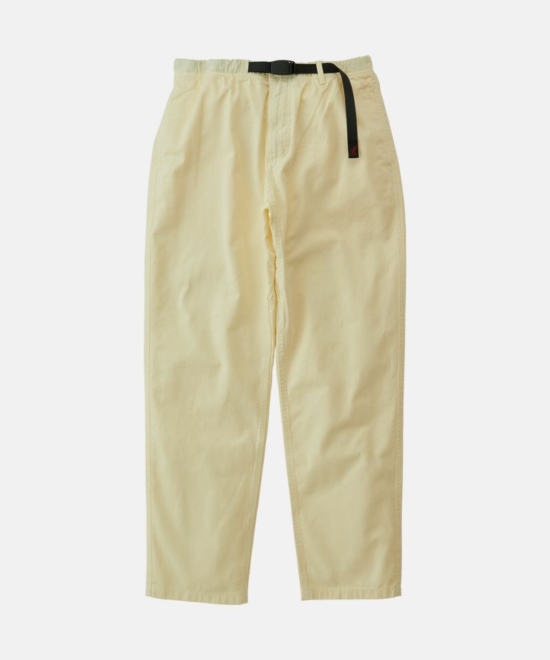 ブランドのシグネチャーモデル「グラミチパンツ」は、1980年代から変わらぬ定番として展開してきた一本です。素材には耐久性のあるエココットンツイル素材を使用。動きやすさを追求した設計で、180度の脚の可動域を確保するGramicci独自のダイヤモンドガゼットクロッチを採用し、ウエストにはナイロン製のウェビングベルトとゴム仕様を組み合わせ、快適なフィット感を実現しています。その汎用性の高さからクライミングだけでなく、ハイキングやサイクリングなどのアウトドアシーンにはもちろん、休日のリラックススタイルにも最適です。