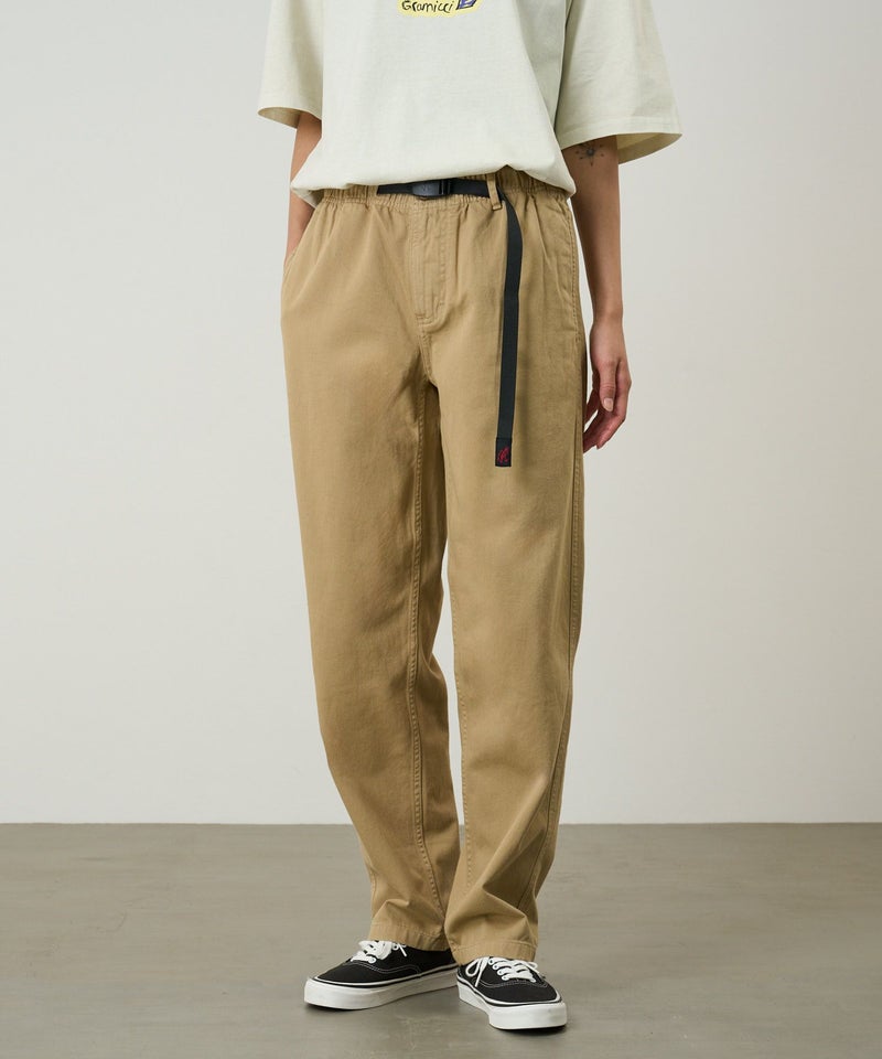 1980年代、クライマーとしての体験をもとに、クライマーが欲しい機能をすべて具現した革新的なパンツとして誕生した、Gramicci PANTのレディースモデルです。片手で調整できるウェビングベルトやイージーウェスト仕様で、フィットしすぎない適度なラフ感があります。また、耐久性が高く、ハリコシのある、激しい動きにも耐えるオーガニックコットンツイルを使用し、雰囲気のある表情に染め上げています。