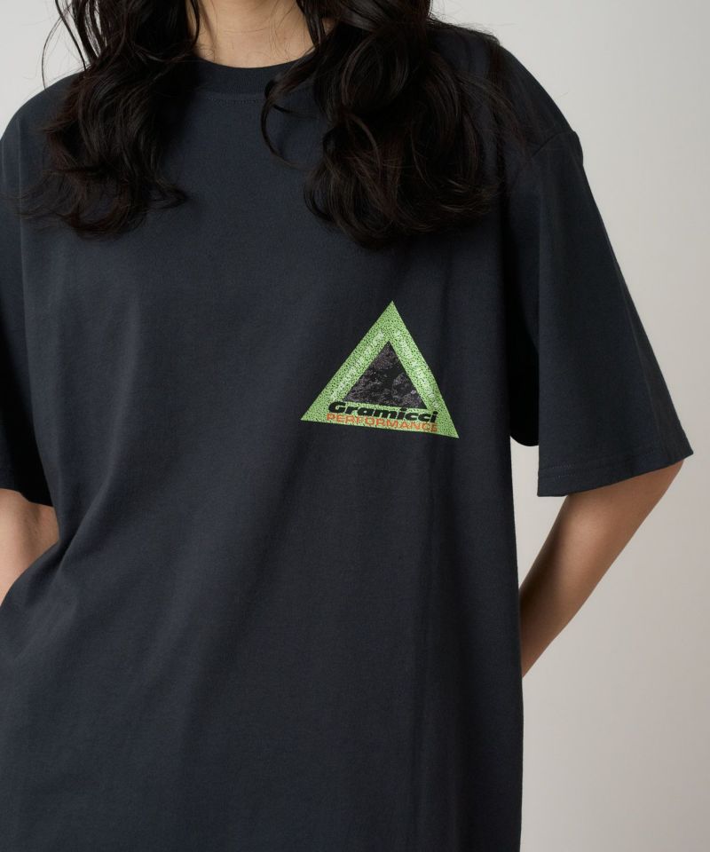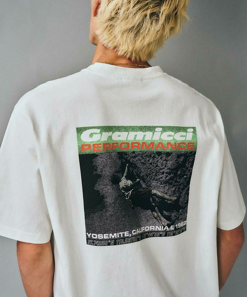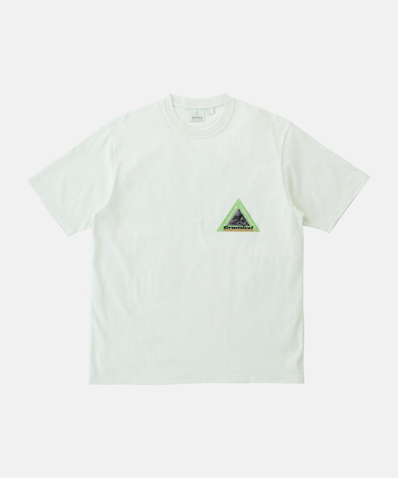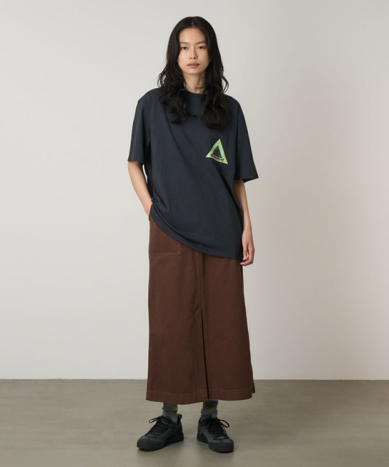 中厚手のドライタッチエココットンを使用した定番アイテム。夏はショーツと合わせて爽やかに、冬は重ね着のインナーとしても最適な、年間を通じて活躍する万能Tシャツ。シンプルでありながら、胸元に小さなグラフィック、背面には大きなグラフィックが印象的な一着です。