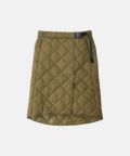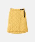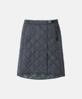 ラウンドしたテールカットの膝下丈ラップスカートは、表地に軽く柔らか、また撥水機能を備え、軽度の雨には対応する高密度リップストップを使用。軽く、弾力を持ち通気性にも優れた中綿は、蒸れを軽減し暖かさを保ち、抗菌・防ダニ効果も備えています。収納袋が付いており持ち運びが便利です。