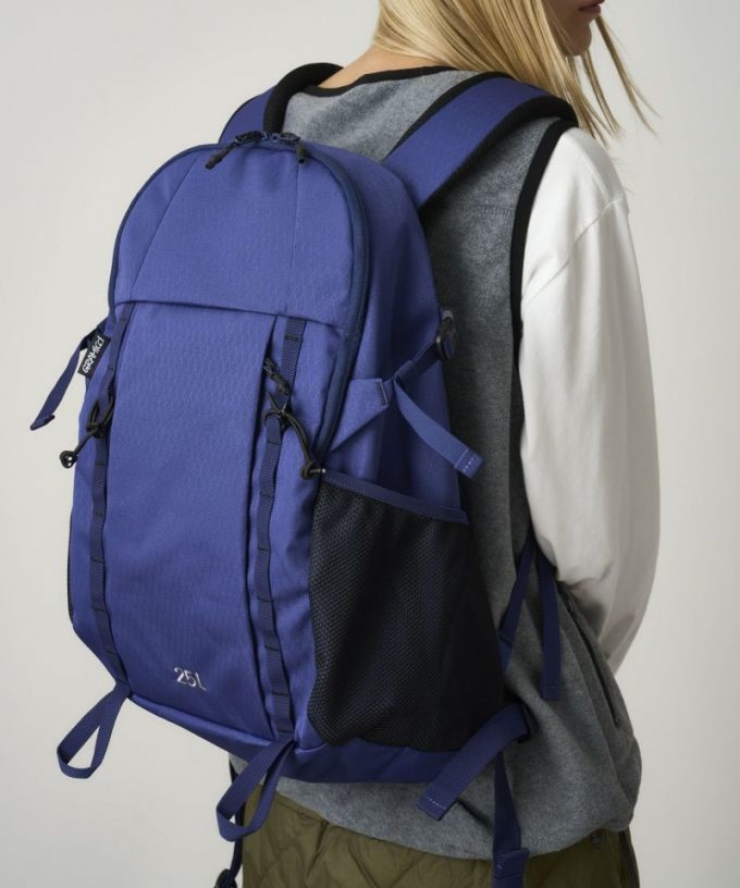 両サイドにメッシュポケット、フロントフラップにはジッパールームを配置。