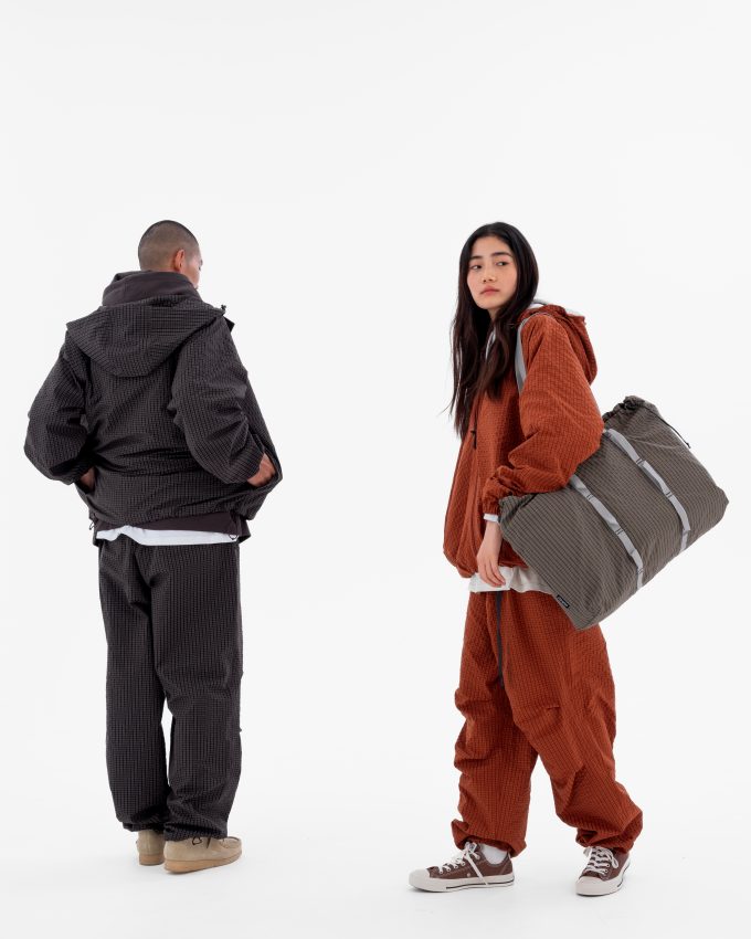 配色糸で織り上げたダイヤチェック柄リップストップが、機能性とデザイン性を兼ね備えています。